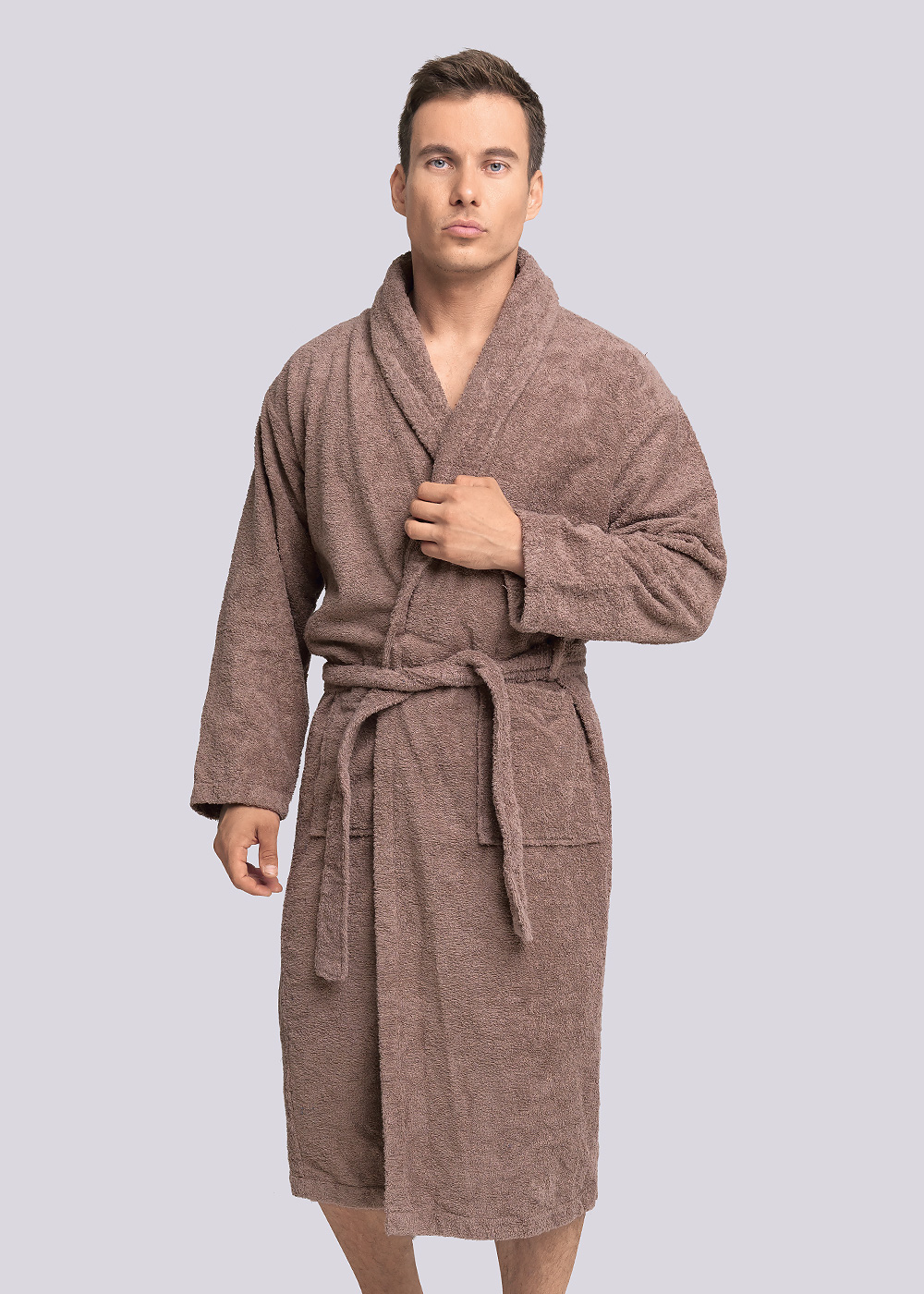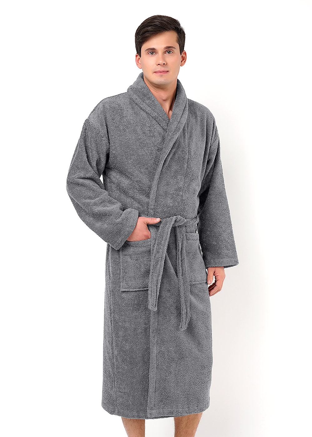 Классический мужской махровый халат с приспущенной линией плеча. По бокам расположены карманы и предусмотрен функциональный пояс. Благодаря высокому качеству обеспечит непревзойденный комфорт и удобство для повседневного использования дома, в бане или в бассейне.
