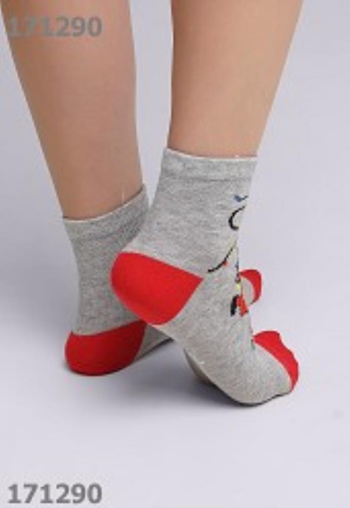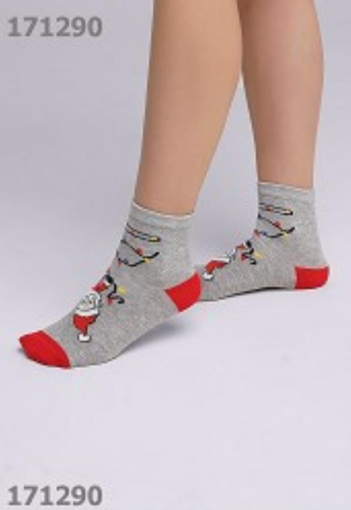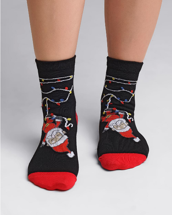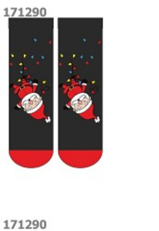 Новогодние детские носки рисунок Дед Мороз с гирляндой