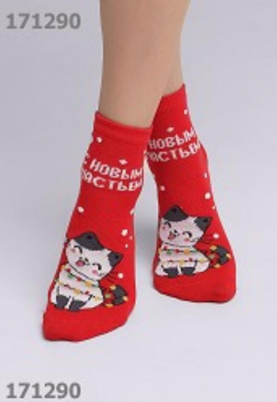 Новогодние детские носки (гладь) Рисунок Котик