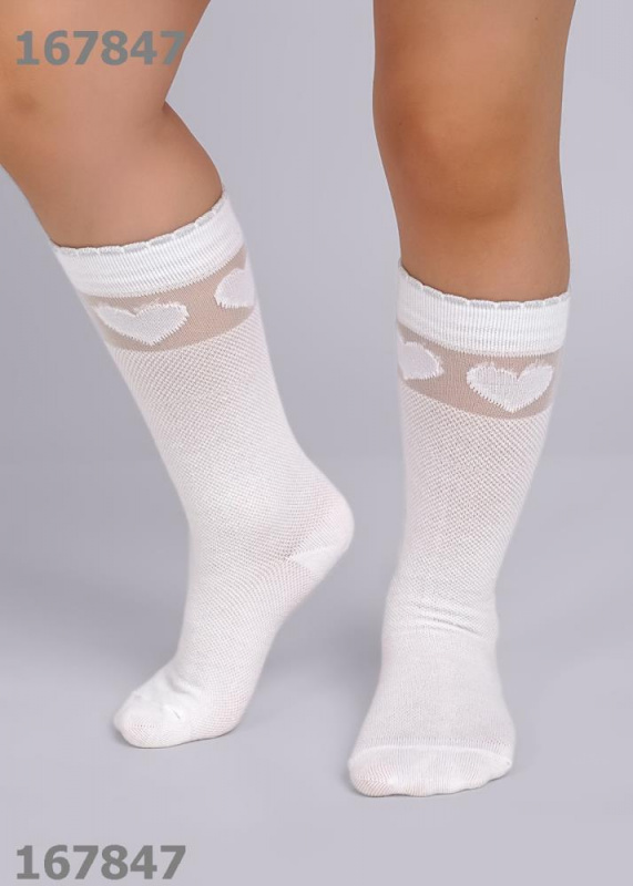 нежные гольфы для девочки плетение сеточка с сердечками на паголенке, резинка украшена люрексом