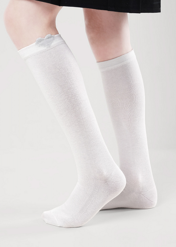 нарядные гольфы для девочки с рисунком сердечко 3д вывязано люрексом