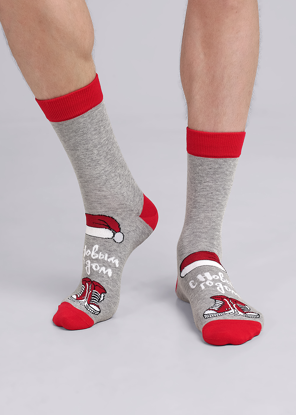 мужские новогодние носки с рисунком, с надписью С НОВЫМ ГОДОМ