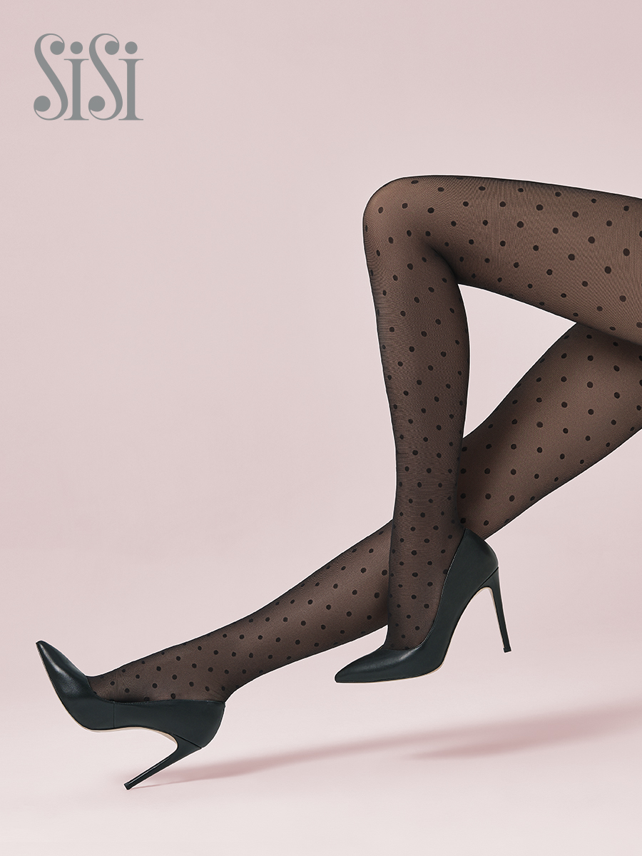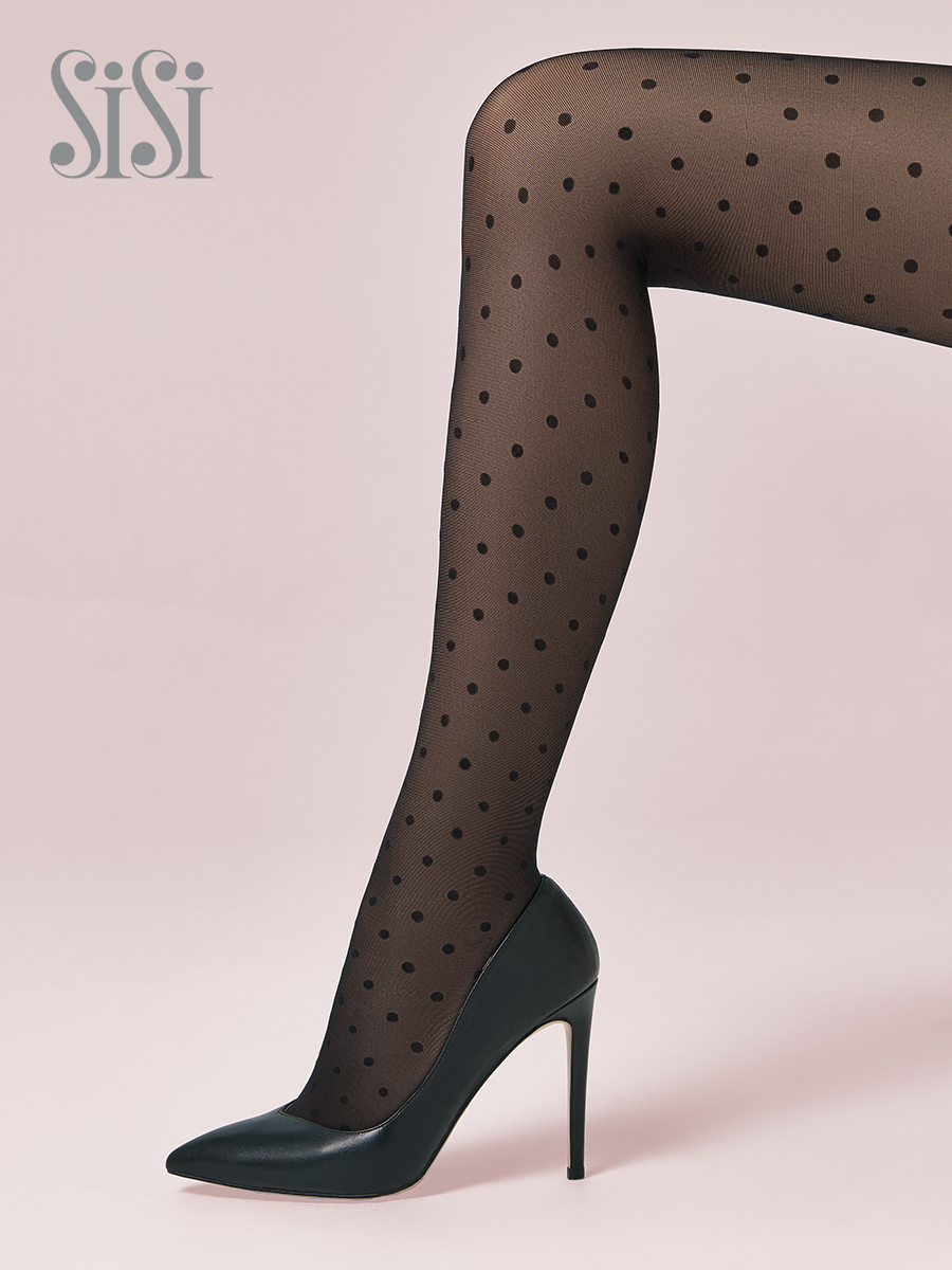 Модные полуматовые колготки 40 DEN в крупный горошек, без трусиков. Плоский шов, невидимый мысок.