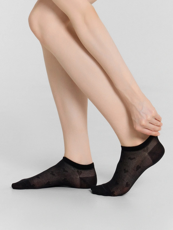 Супер-короткий , тонкий, ажурный женский носок с рисунком в виде сердец.