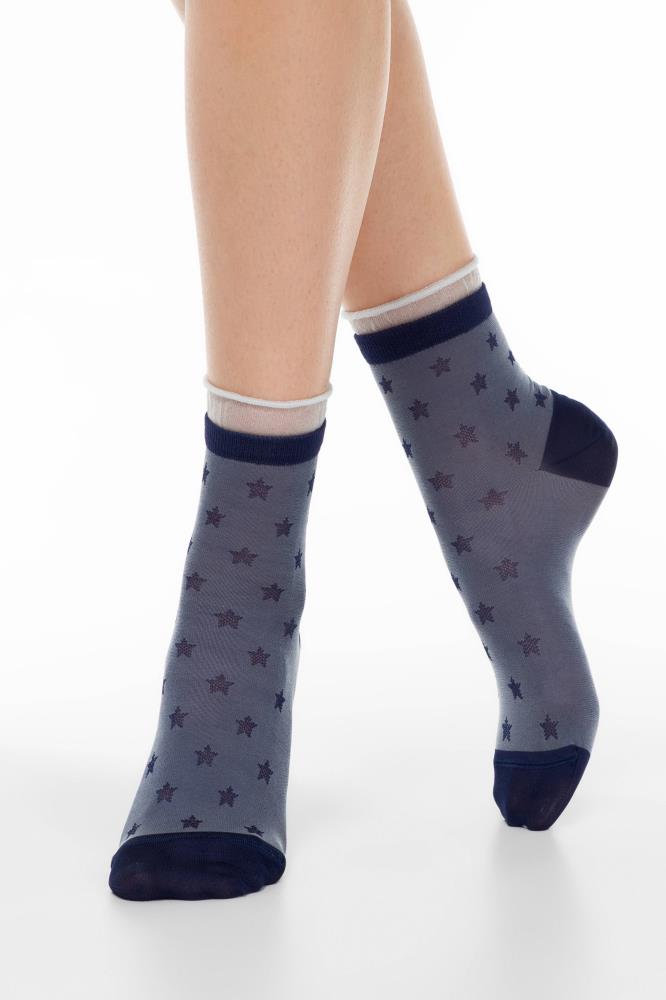 Женские носки из вискозы, с декоративной резинкой из сетки, с рисунками.
