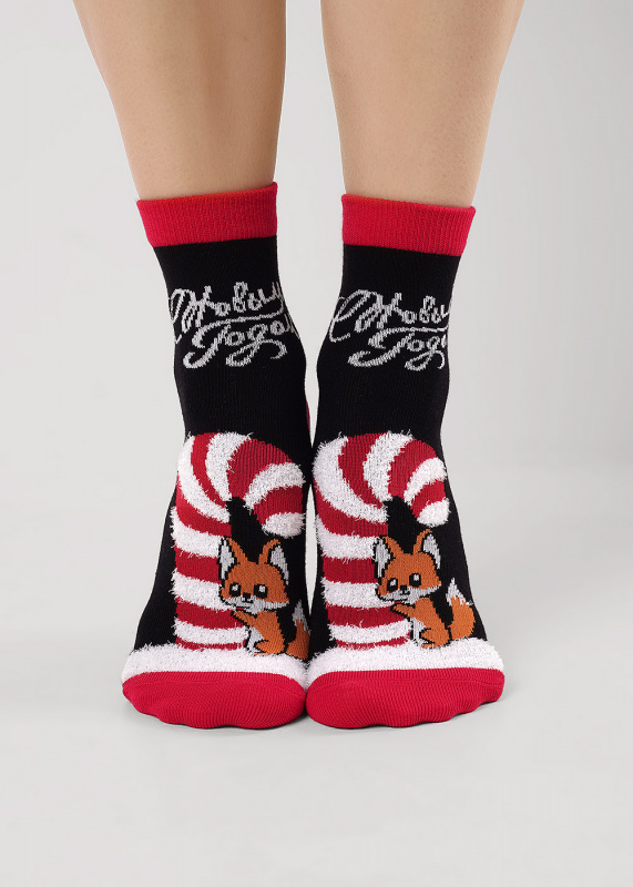 Носки женские с рисунком большая конфета с лисичкой и надписью С Новым годом!