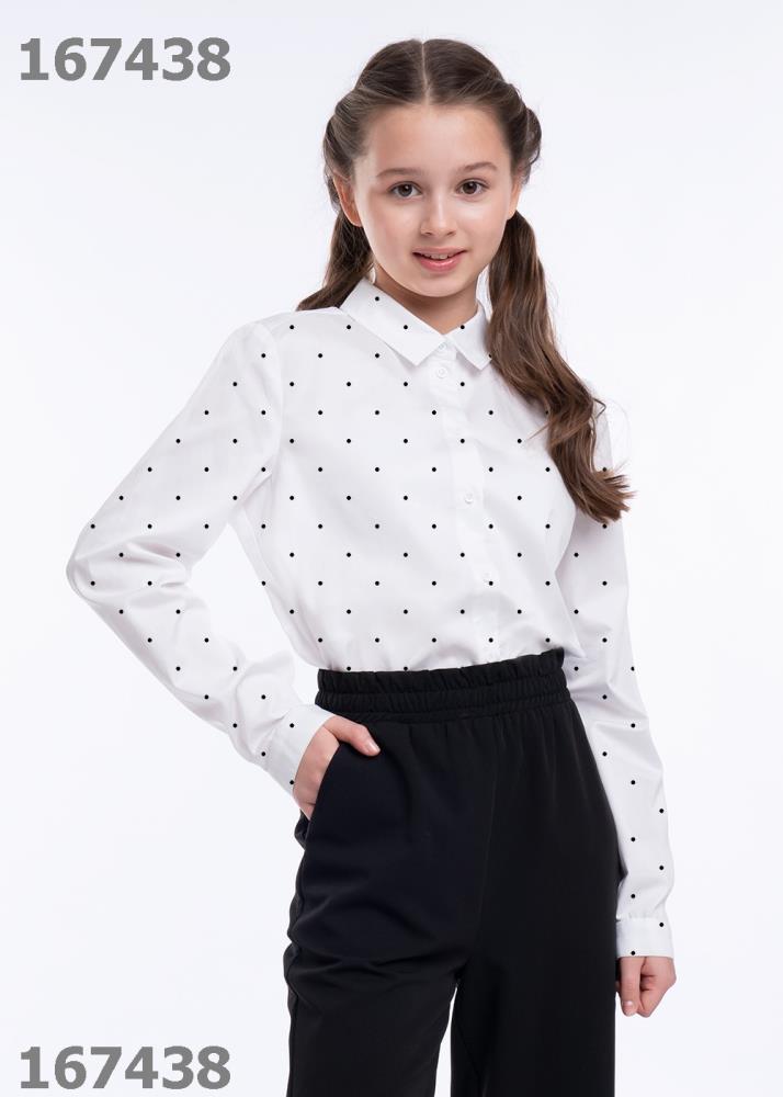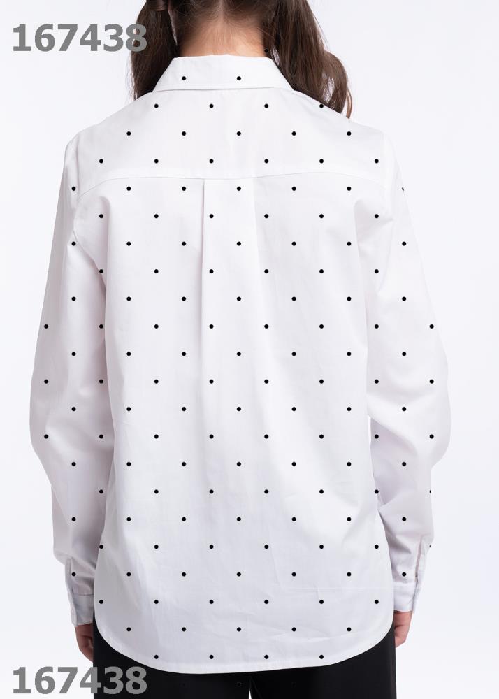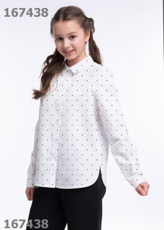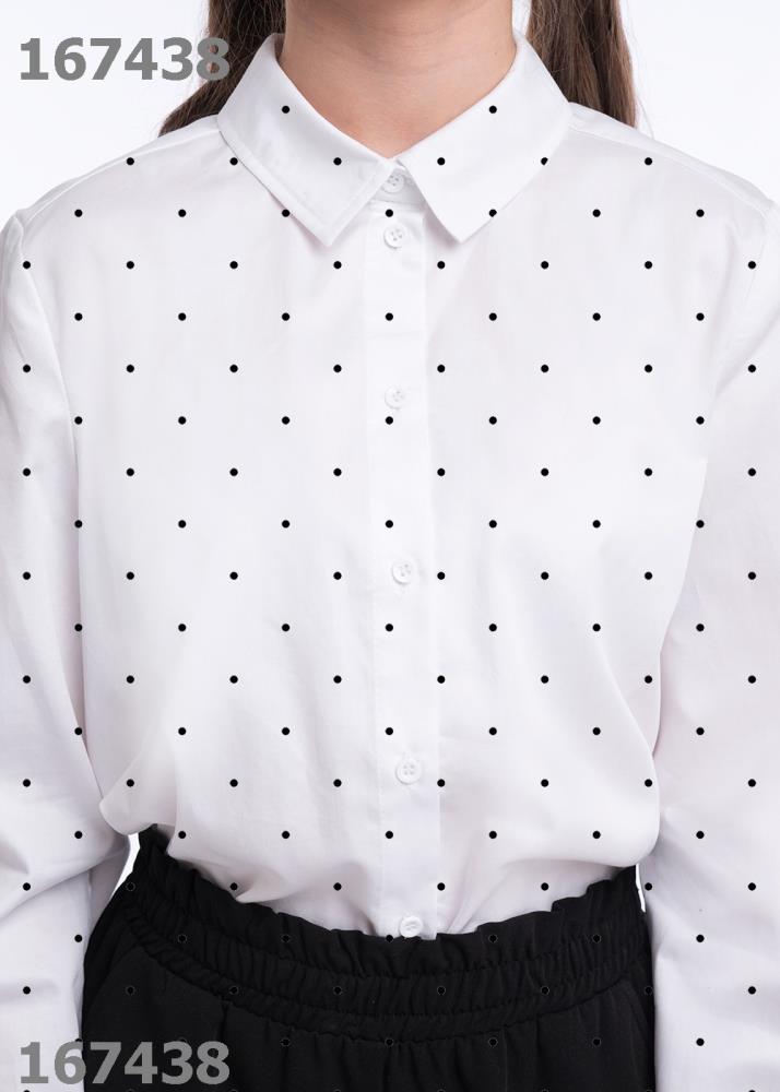 Белая рубашка в горох из коллекции для девочек — классика не только для школы! Модель выполнена из поплина. Благодаря лёгкому и воздушному материалу в рубашке будет комфортно на протяжении всего дня. Застежка на пуговицы.