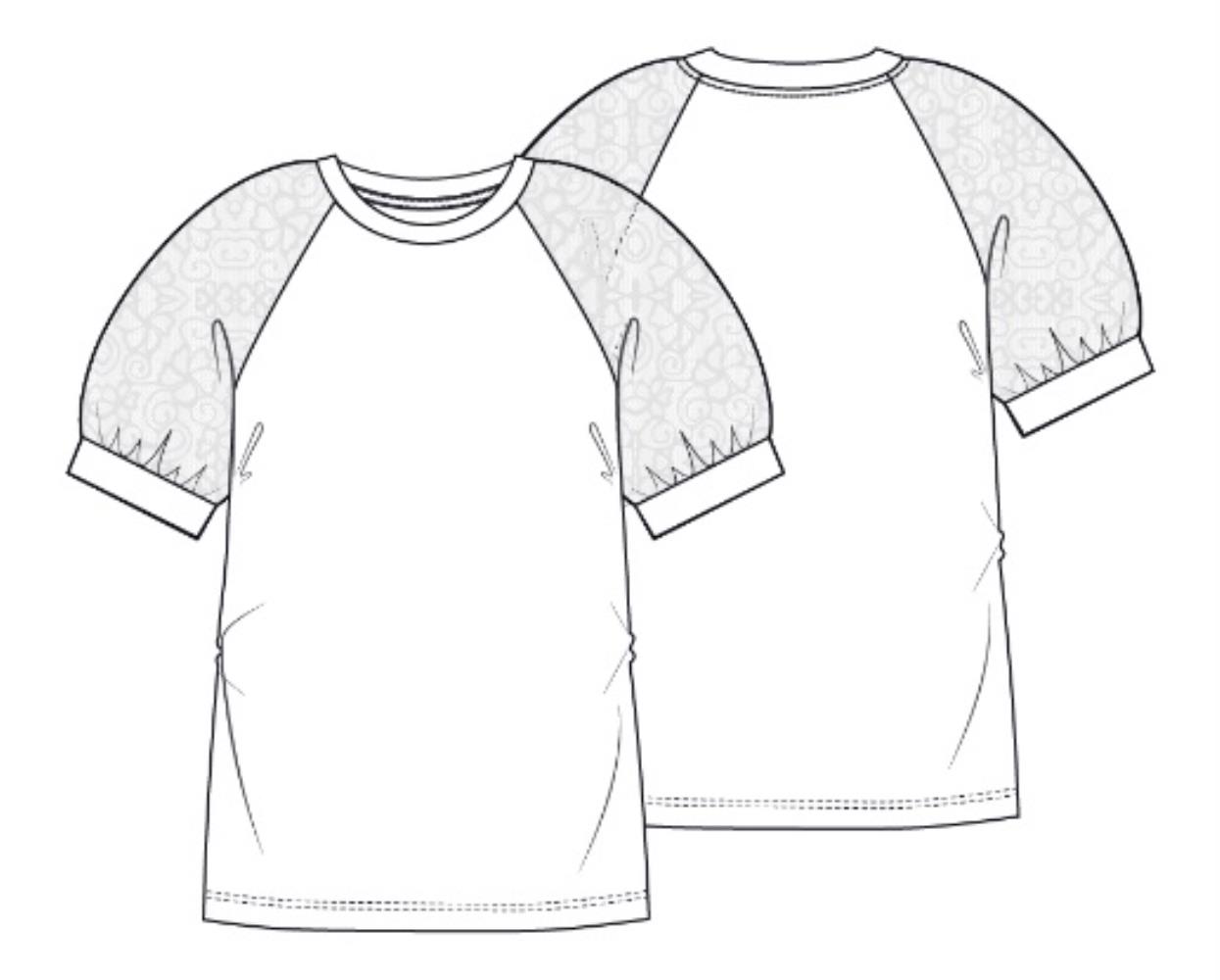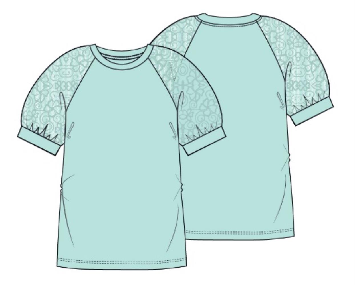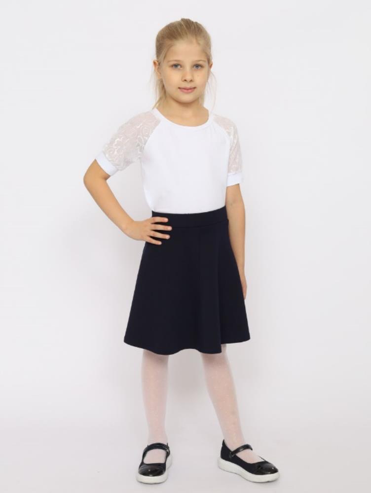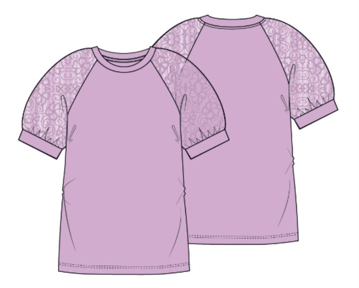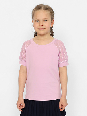 Кулирная гладь, 92% хлопок, 8% эластан / Джемпер для девочки с короткими рукавами фонариками. Рукава из сетки. Горловина окантована.