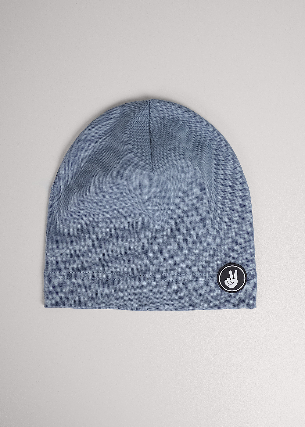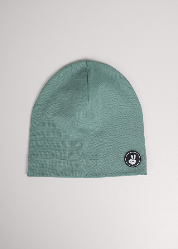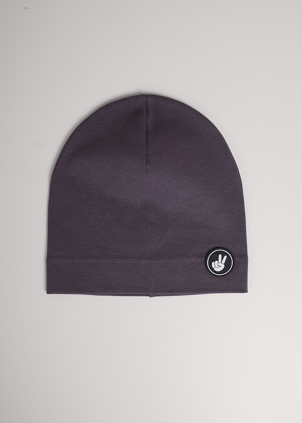 Шапка однослойная без отворота. Декорирована стильной нашивкой. Стильная шапка подойдет для активного отдыха, на прогулку, как головной убор в детский сад. Размер 52-54