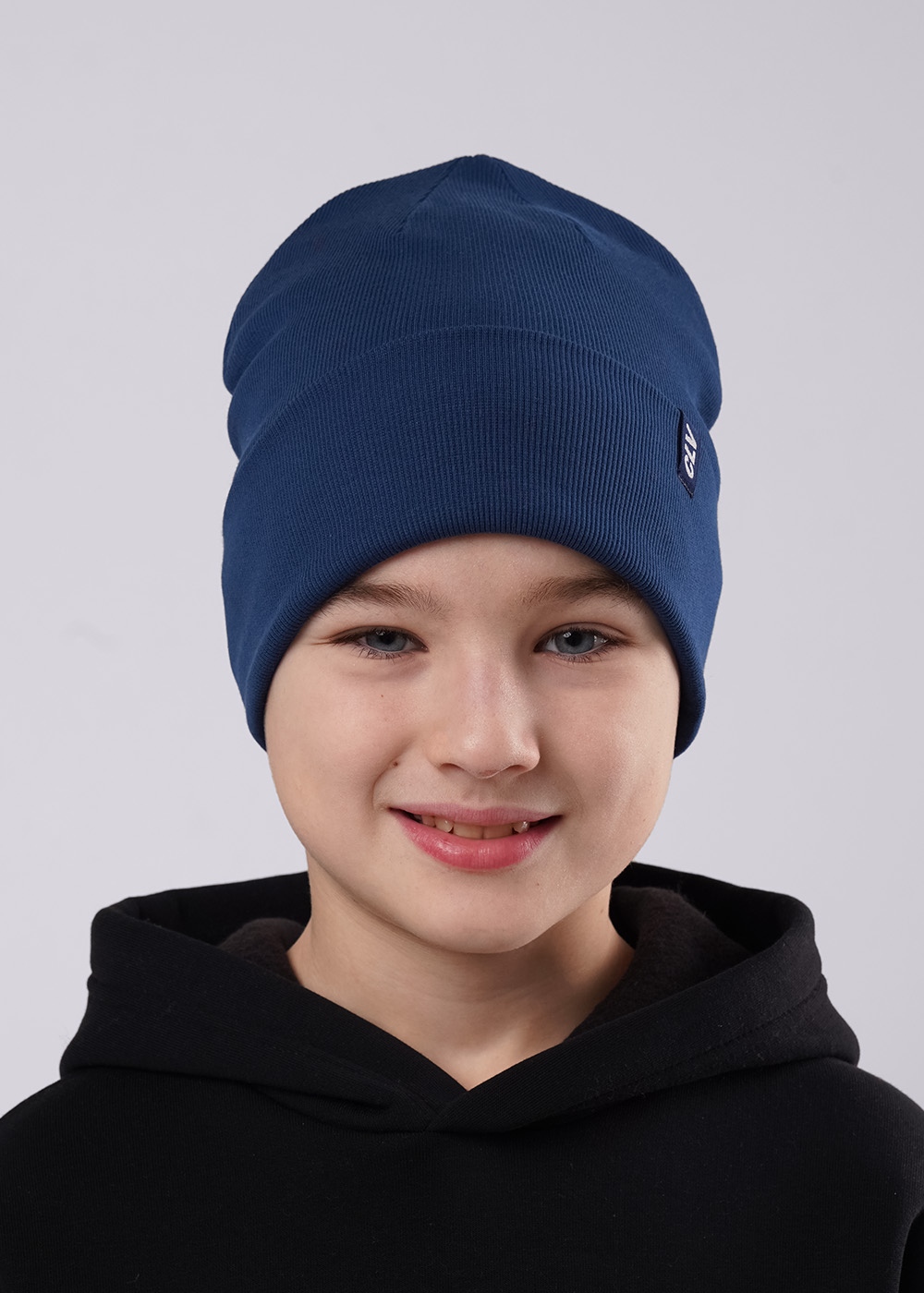 Детская двойная шапка с отворотом, декорирована имиджевой нашивкой логотип . Размер UA соответствует размеру 54-56.