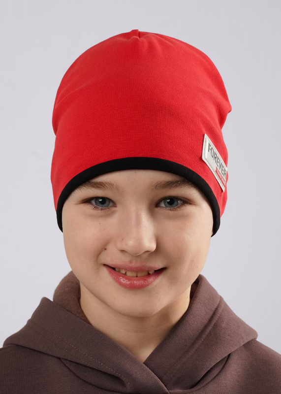 Шапка детская двойная без отворота, декорирована стильной нашивкой. Мягкая и удобная, хорошо защищает от ветра. Превосходно подойдёт для весны. Размер 52-54