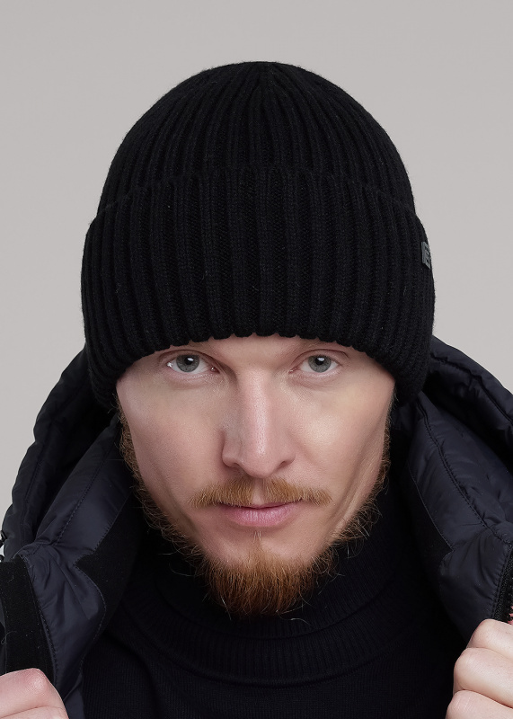 Шапка мужская с отворотом, с подкладом из флиса. Выполнена из высококачественной пряжи с добавление шерсти, декорирована стильной нашивкой. Станет не только отличной защитой от холода, но и модным аксессуаром.