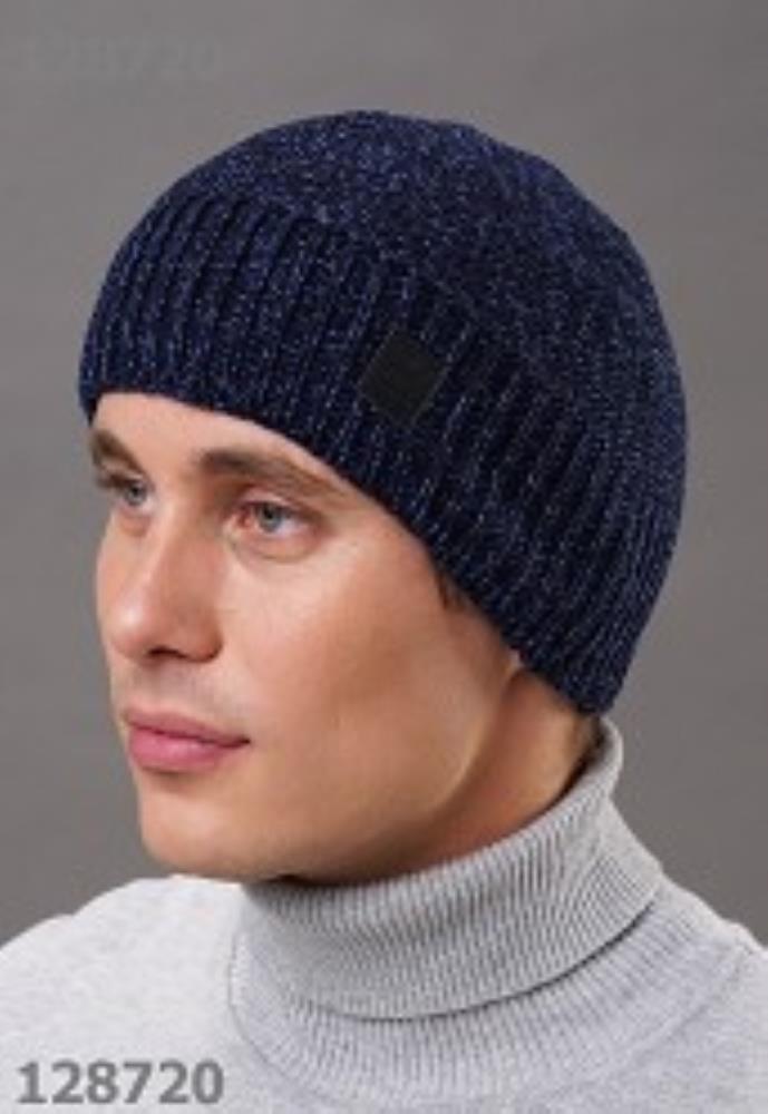 Мужская шапка по голове, выполненная из трендовых мулинированных нитей, внутри утепление из флиса по всей голове