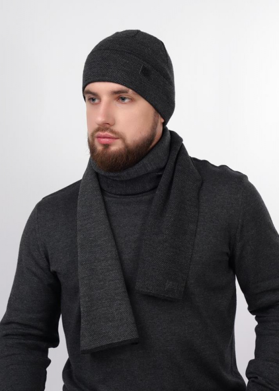 Мужской шарф выполнен из пряжи с содержанием шерсти, декорирован стильной нашивкой логотип, размер 162 х 19 см, идеально подойдёт для зимы.