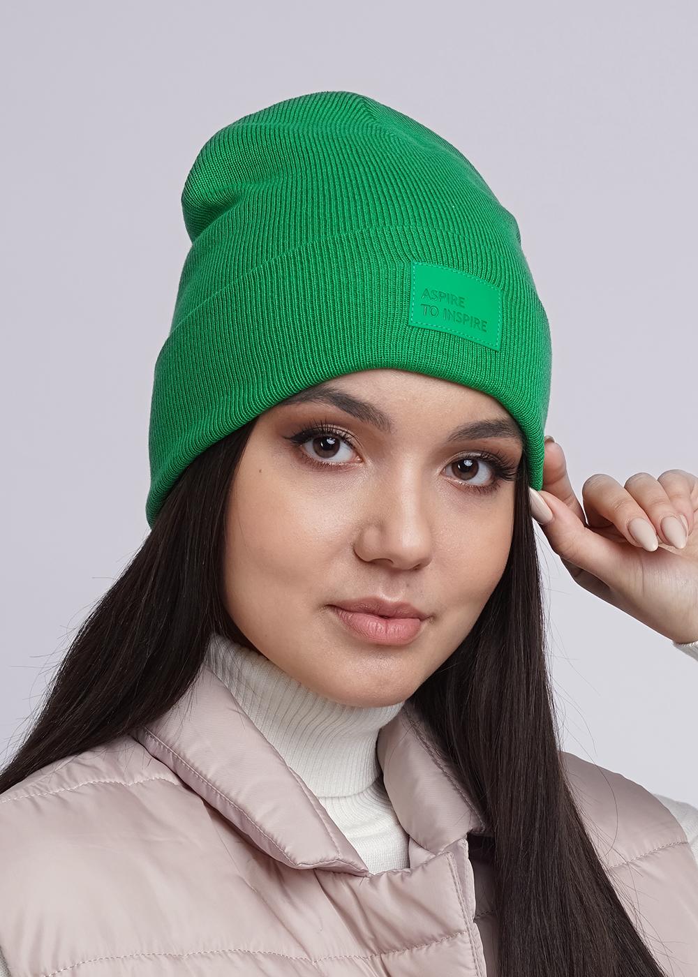 Шапка двойная с отворотом, декорирована фирменной нашивкой в центральной части.
