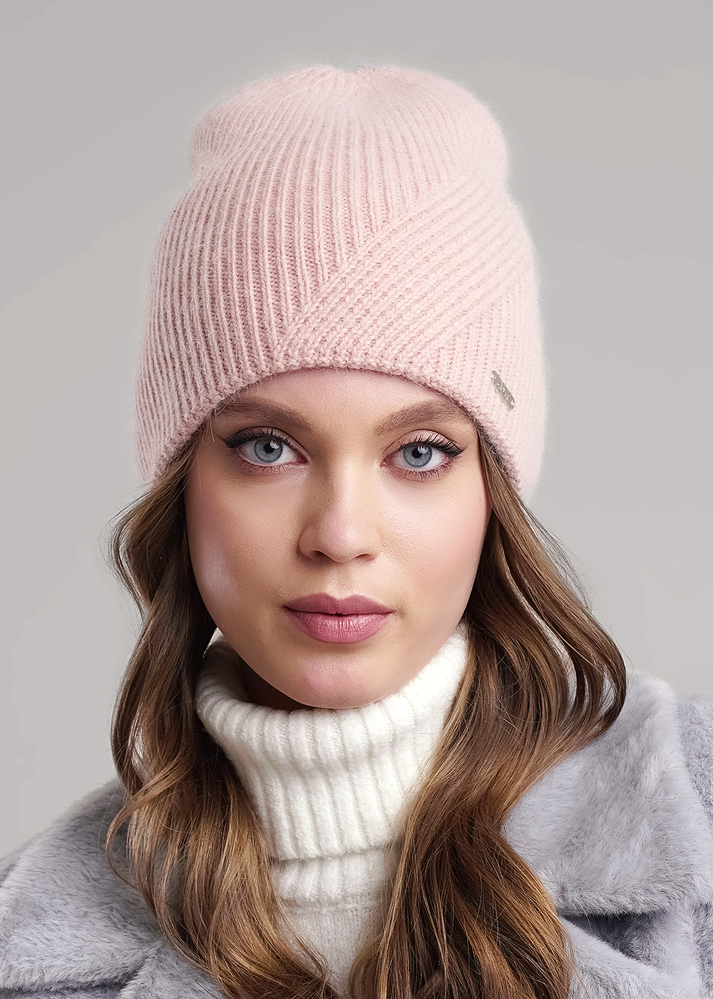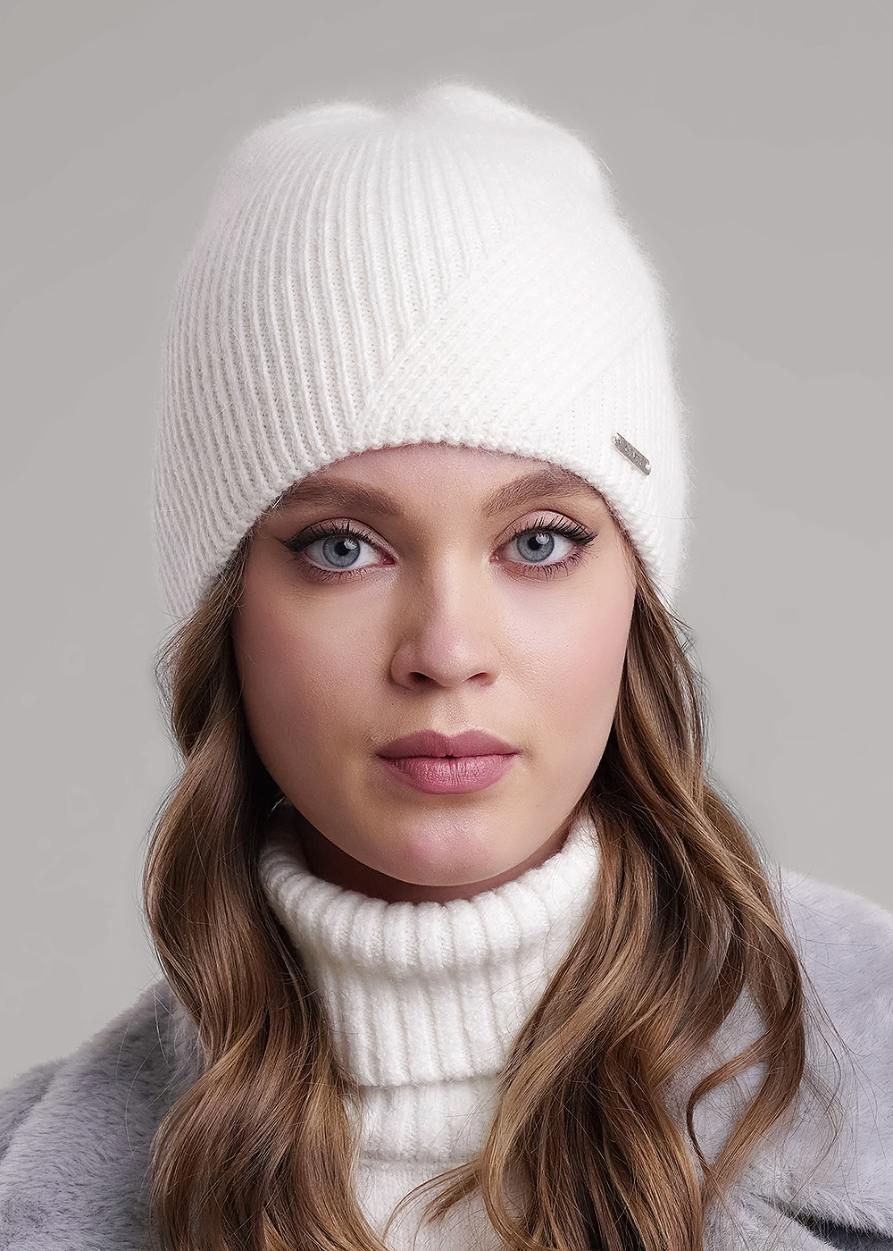 Женская двойная шапка, декорирована нашивкой логотип. Отлично подойдёт для холодной зимы.
