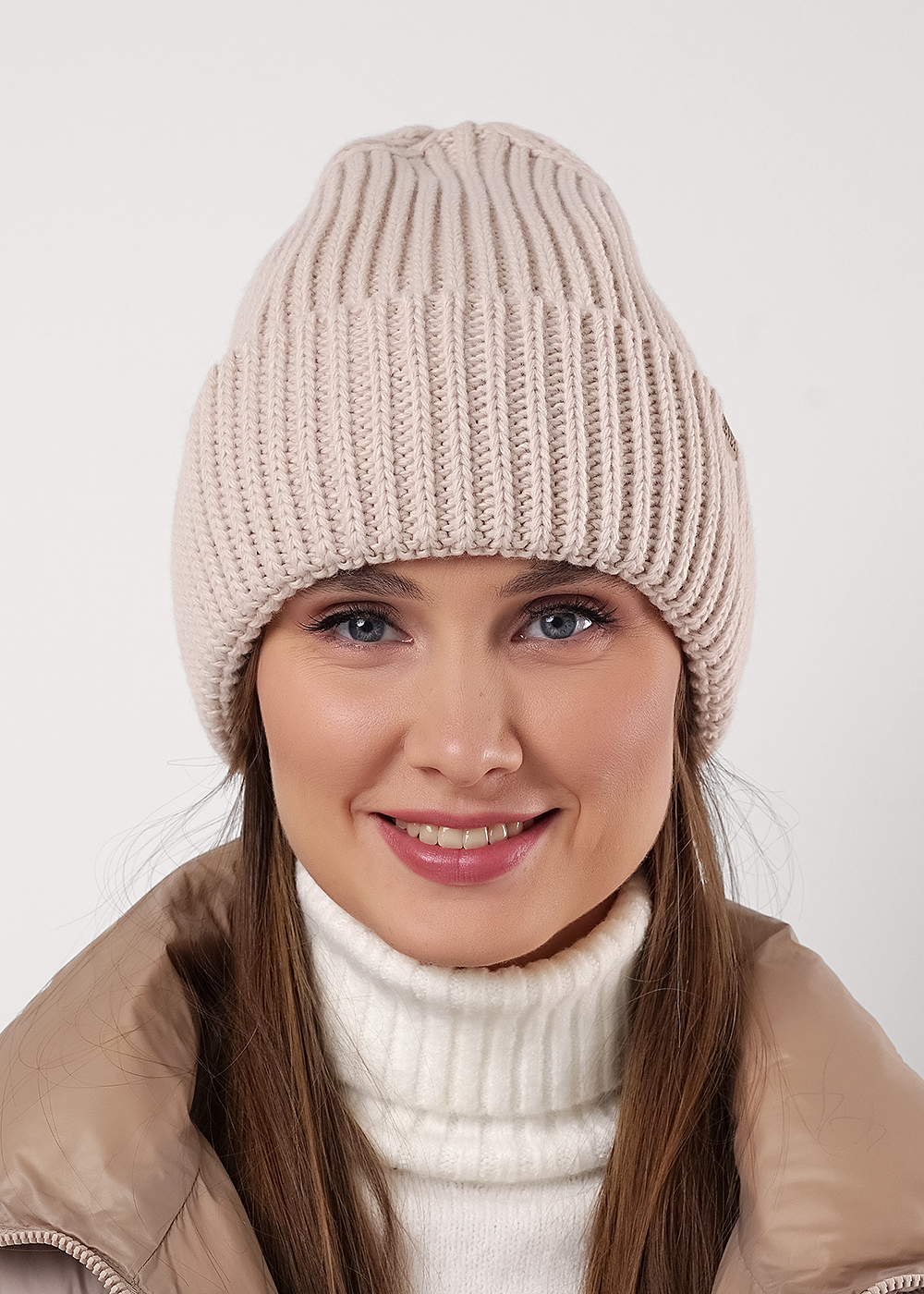 Женская шапка с отворотом, декорирована стильной нашивкой в височной зоне. Утепление флисом по всей голове. Идеально подойдёт для холодной зимы.