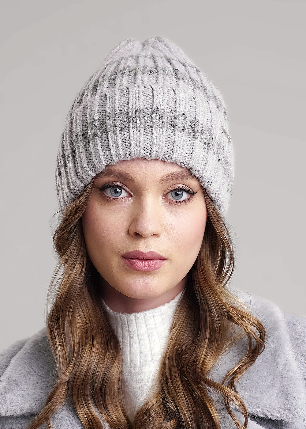 Шапка женская с отворотом, с флисовой подкладкой, декорирована стильной нашивкой. Выполнена из мягкой пряжи с добавлением ангоры, благодаря чему хорошо сохраняет тепло. Отличный выбор для холодной зимы.