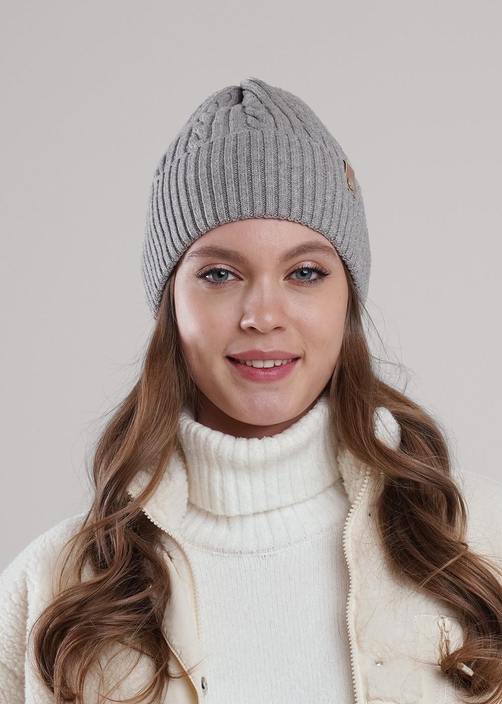 Шапка женская однослойная с отворотом, без подклада. Декорирована нашивкой логотип. Отдично подойдёт для осенне- весеннего периода.