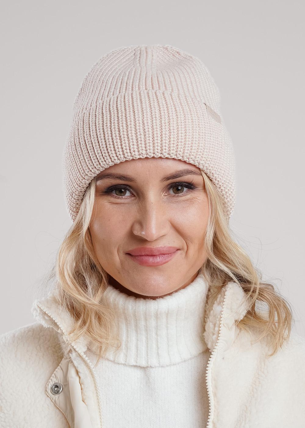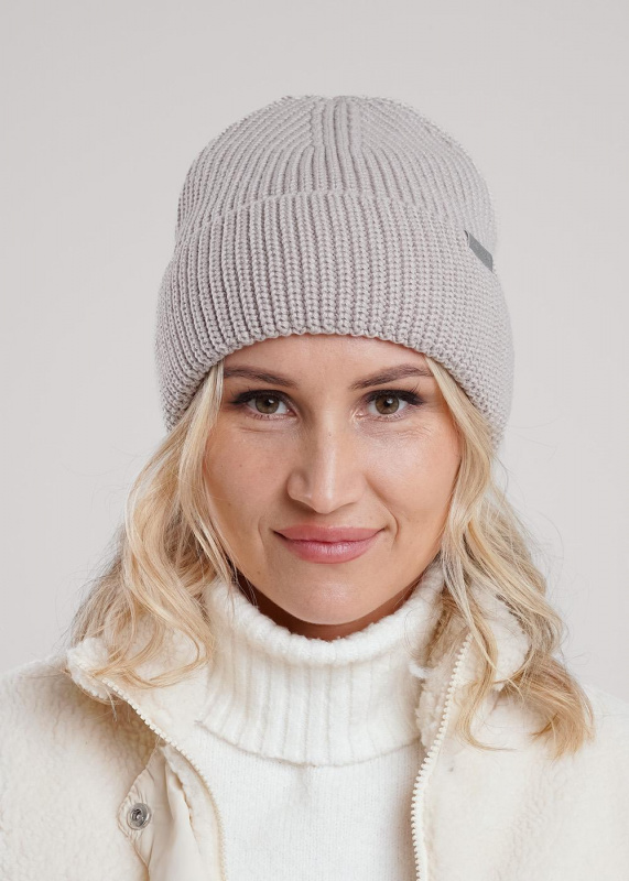 Шапка женская с отворотом, без флиса. Декорирована нашивкой логотип. Отдично подойдёт для осенне-весеннего периода.