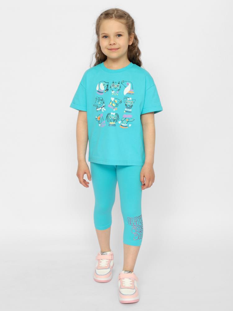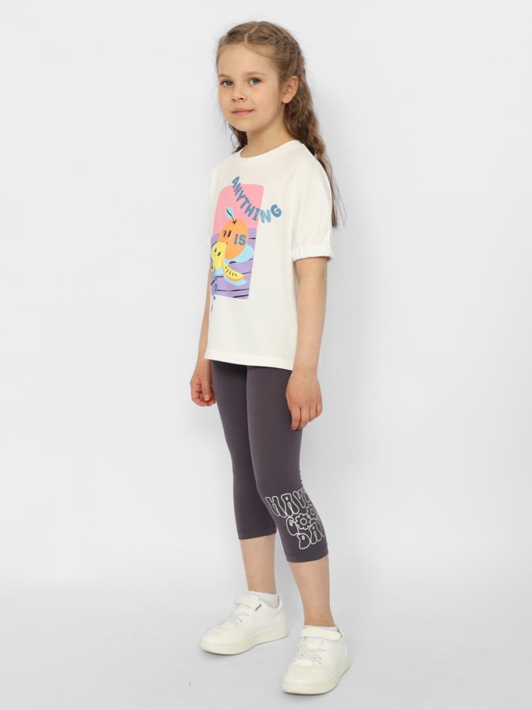 Кулирная гладь, 92% хлопок, 8% эластан / Бриджи для девочки без боковых швов, с резинкой по талии. Декорированы принтом с блестящим эффектом (надпись: Хорошего дня).