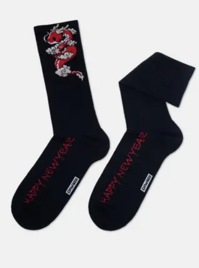 Удлиненные мужские носки из хлопка, с рисунками новогодней тематики.