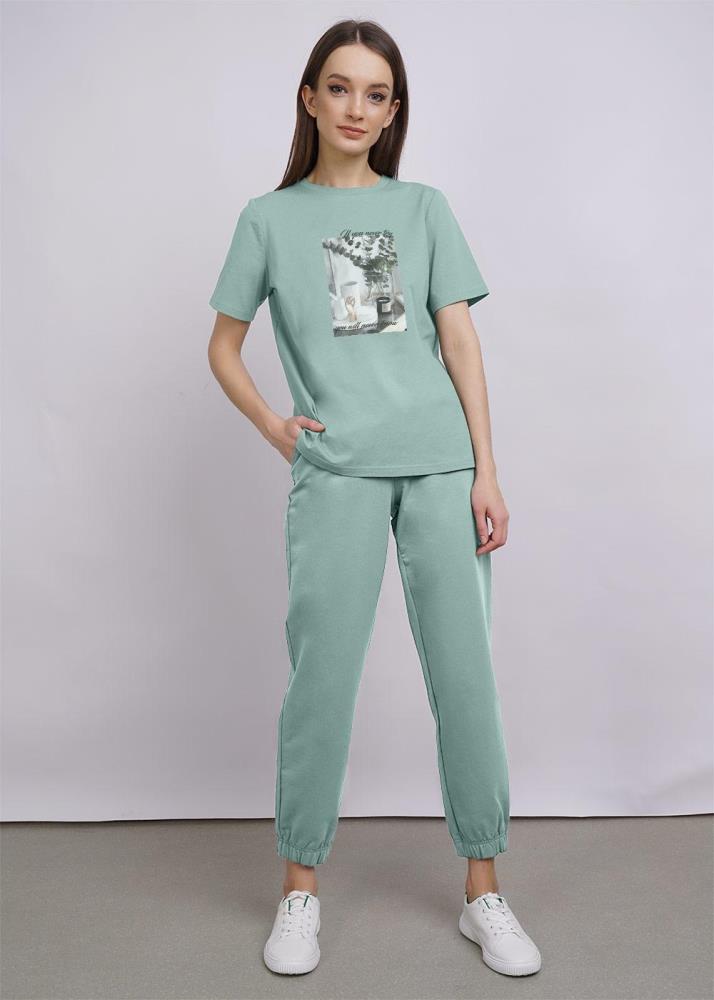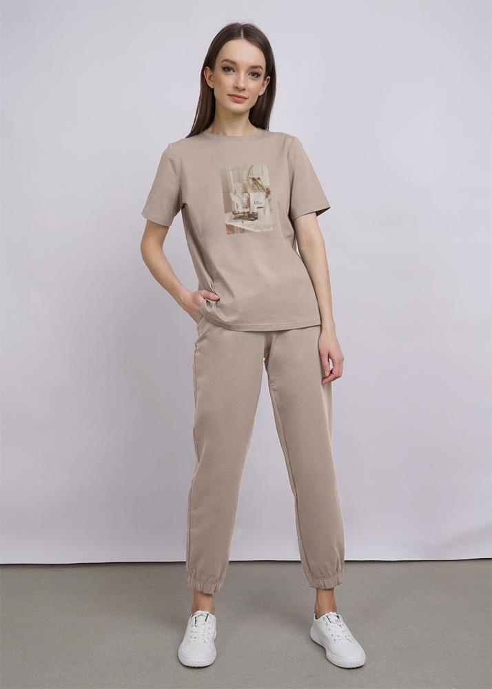 Брюки из футера умеренного объема. По бокам карманы. Пояс и манжеты на резинке.