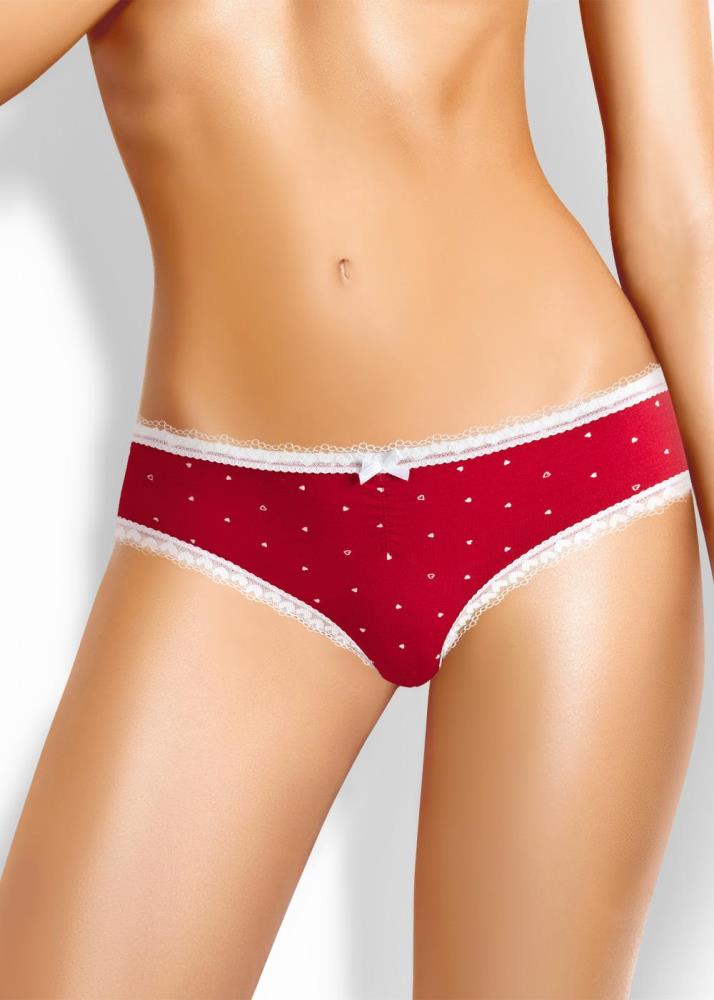 Трусы-бикини женские из эластичного хлопкового полотна. Обработка краев - узким кружевом. По переду декоративная сборка и бант.