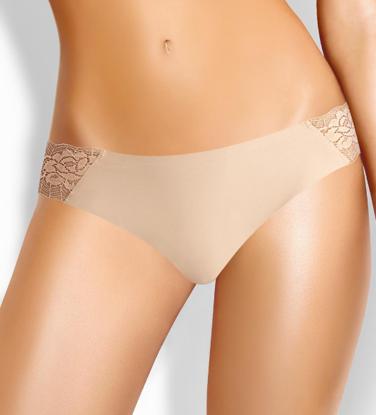 Бесшовные трусы бразилиана комфортной посадки. По бокам вставки из кружева.