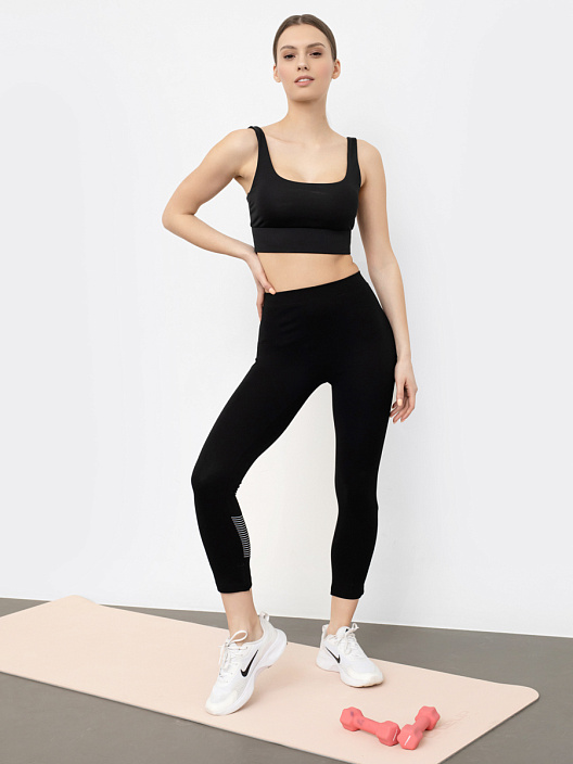 Стильные женские легинсы из трикотажной кулирки. Силуэт облегающий, длина 7/8. Эластичная тесьма в поясе мягко, но уверенно удерживает легинсы на талии. Рекомендуем для спорта и активного отдыха!