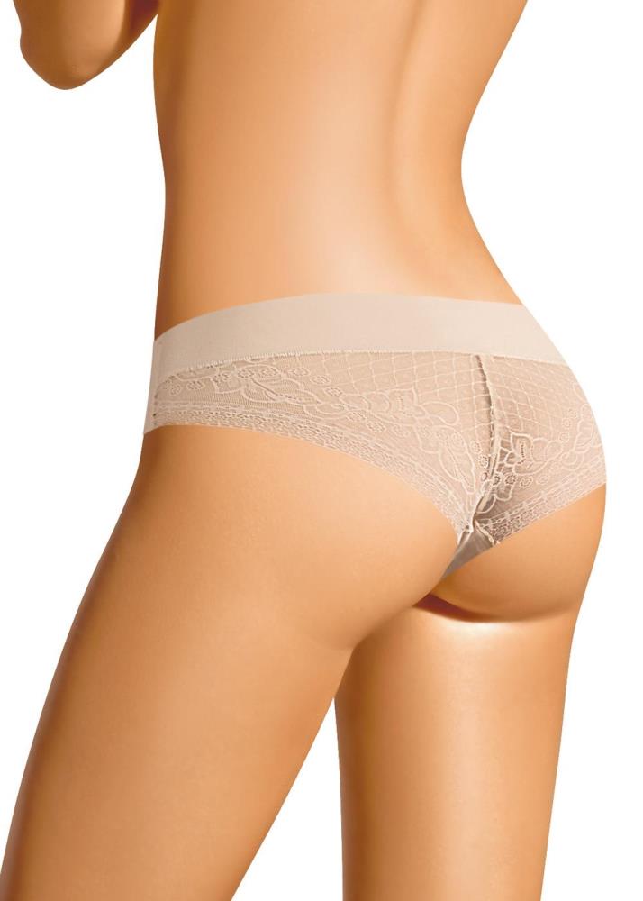 Бесшовные трусы бикини комфортной посадки. На детали спинки кружево на тело.