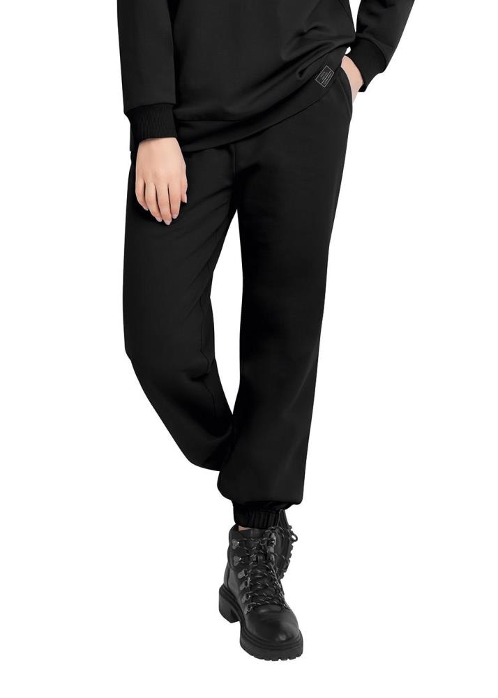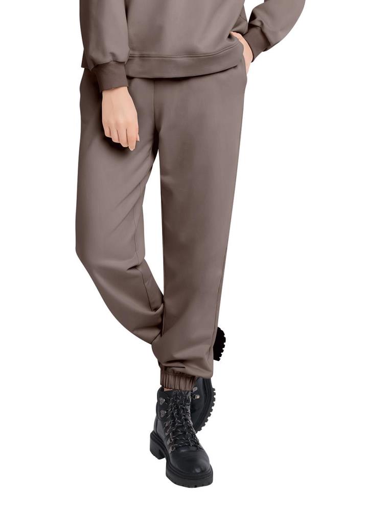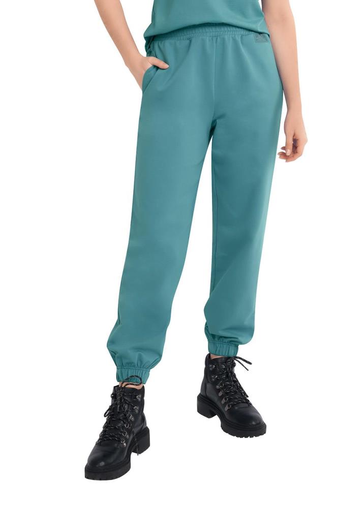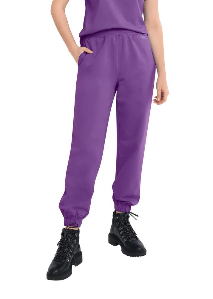Брюки из футера трендовых цветов, выполнены в спортивном стиле с цельновыкроенными манжетами. Пояс с комфортной резинкой.