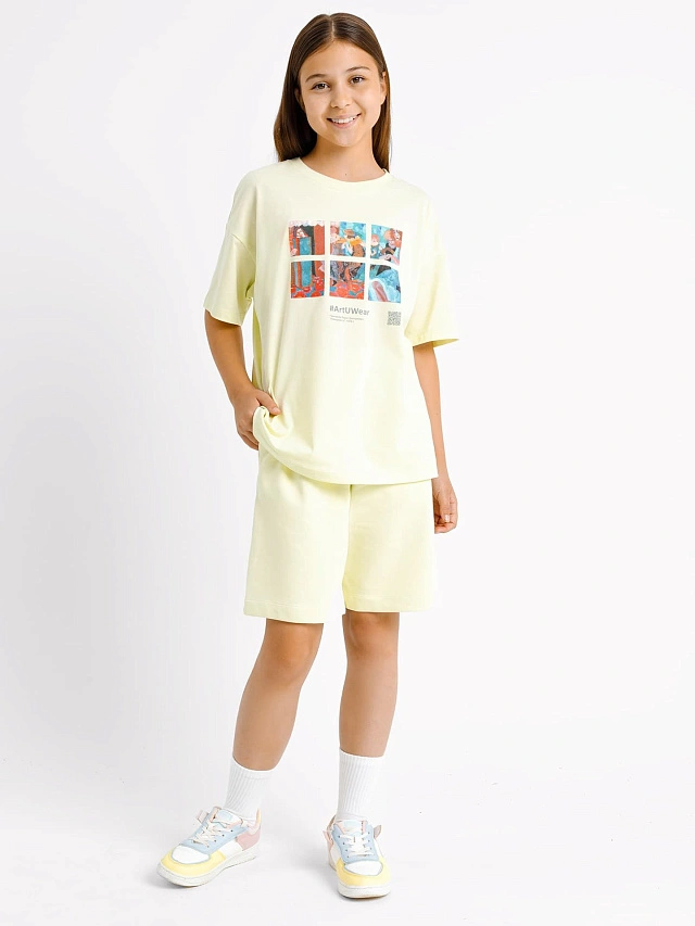 Футболка для девочек из высококачественного 100% хлопка. Ткань мягкая, легкая и эластичная, не сковывает движения, комфортная в носке. Длина до середины бедер, свободный силуэт, горловина круглая, спущенная линия плеча, рукава до локтя.