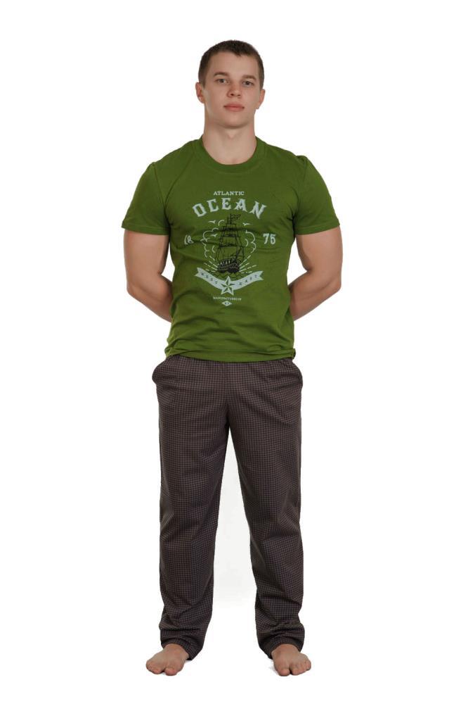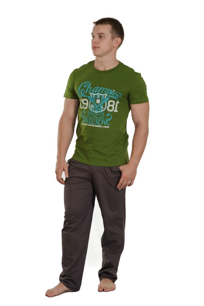Брюки мужские с умеренным облеганием по линии талии и по линии бедер. Свободное облеганием в верхней части ноги. Верх брюк на притачном поясе со втяжной резинкой и затяжным шнуром, расположены в средней части пояса и выходящим через две выметанные петли. Низ брюк свободный прямой. Плотность 120гр/м2