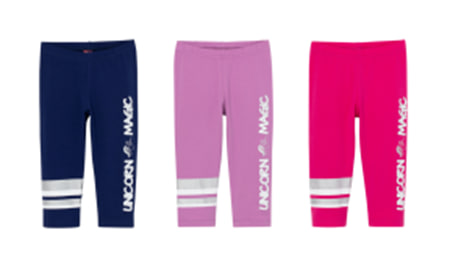 Бриджи для девочки без боковых швов с резинкой в поясе. Спереди бриджи декорированы принтами.
