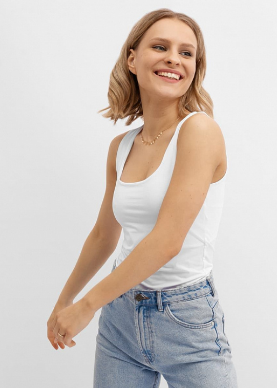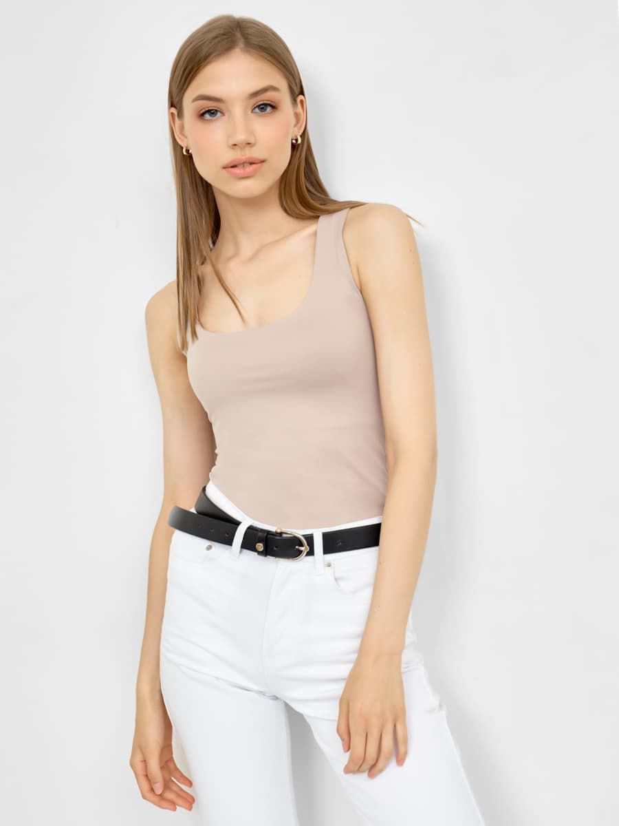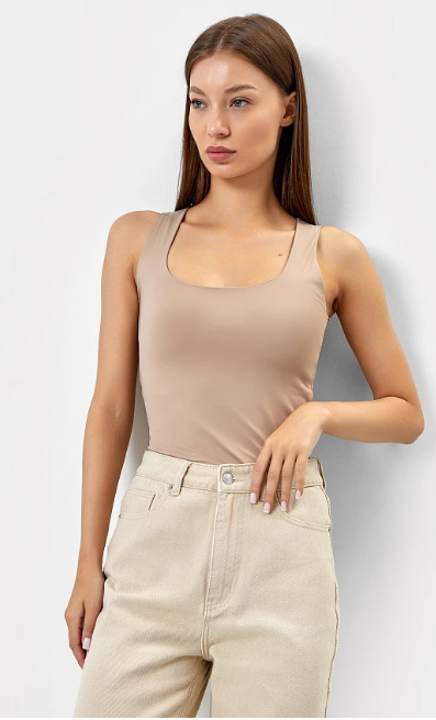 Женский топ облегающего силуэта из трикотажного эластичного полотна – мягкой невесомой микрофибры. Перед и спинка без швов и рельефов. Горловина имеет U-образный вырез. Удобно, лаконично и стильно!