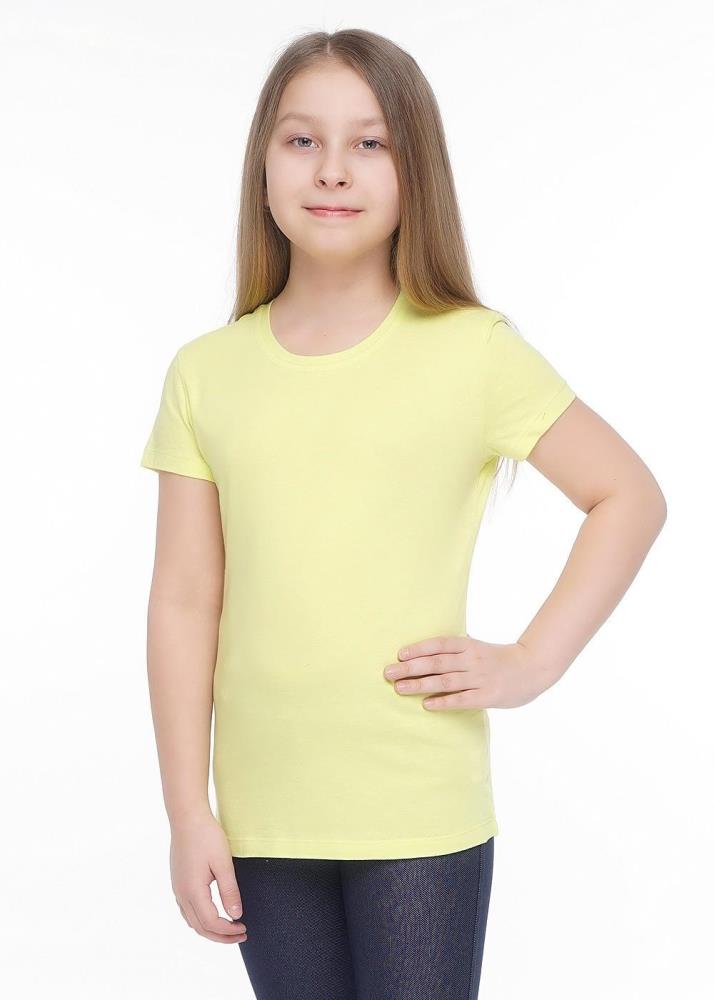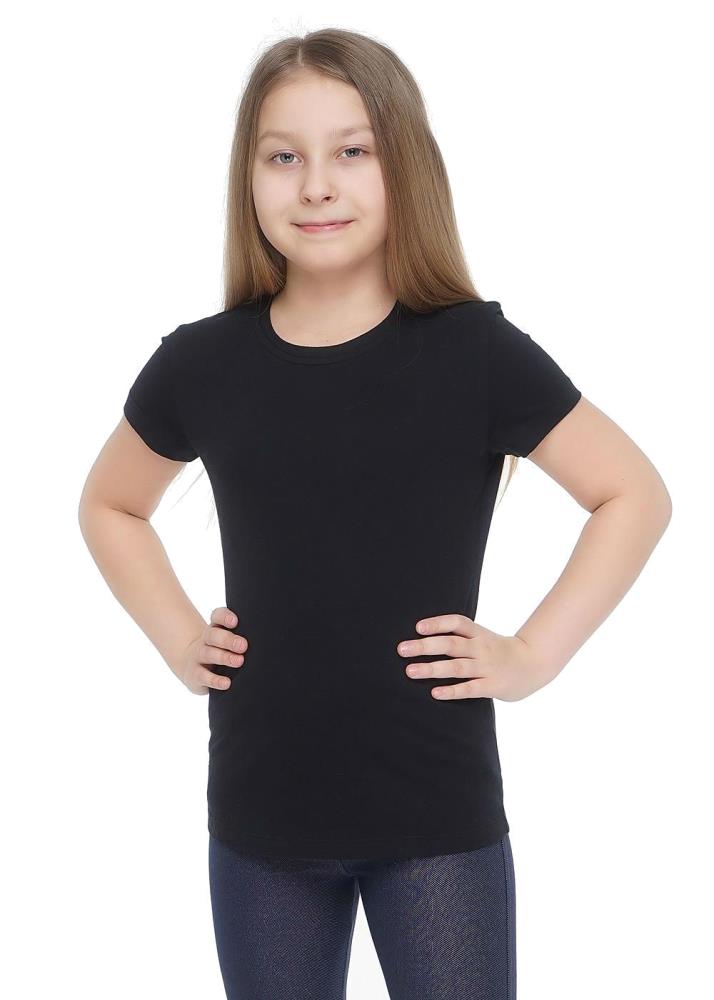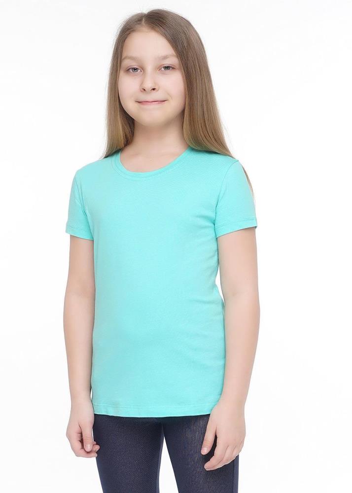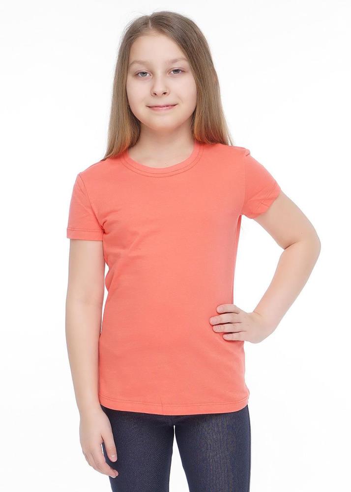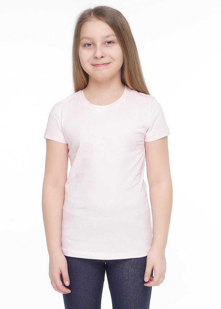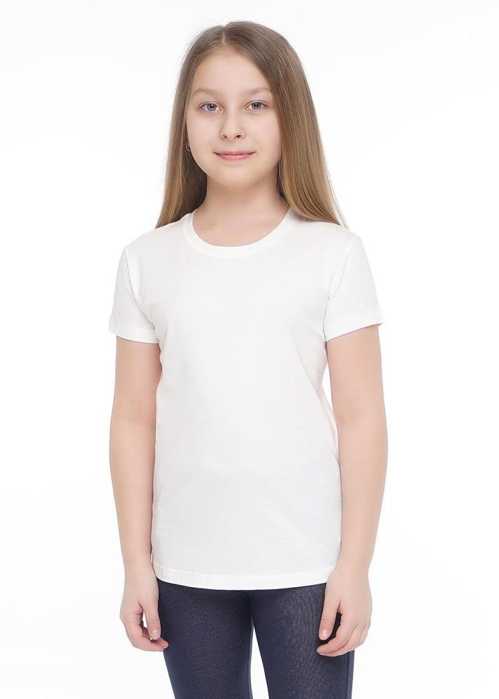 Базовая футболка для девочки из хлопка малого объема с коротким рукавом. Горловина круглая с окантовкой.
