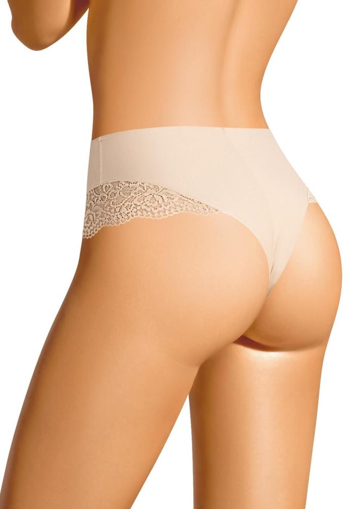 Бесшовные трусы стринги комфортной посадки. По бокам вставки из широкого кружева.