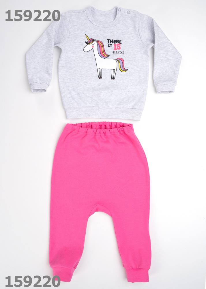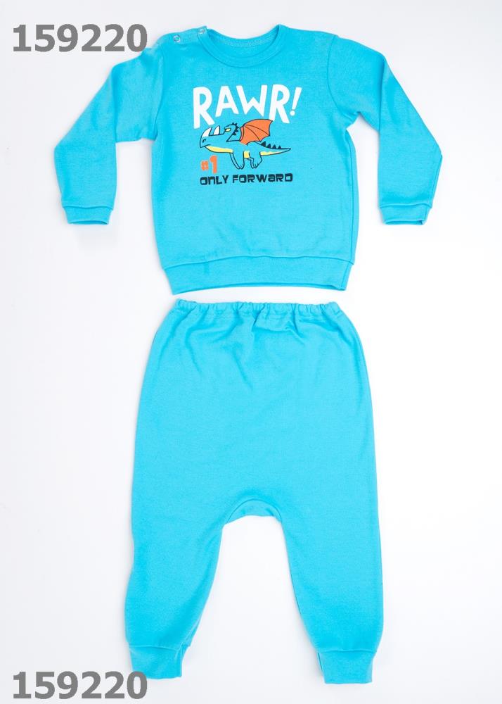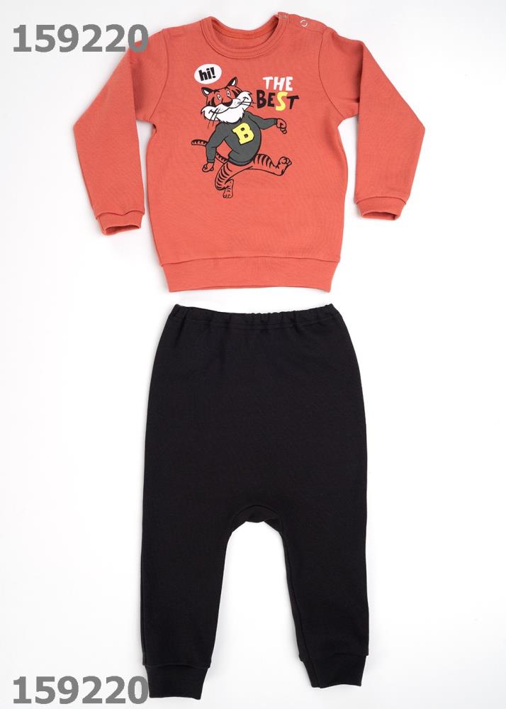 Комплект джемпер и брюки на манжетах, выполнен из интерлока 100% хлопок. Украшена модель принтом.