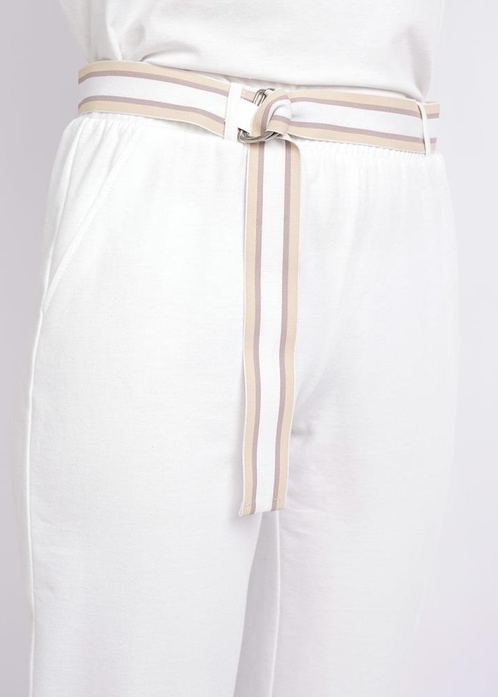 Брюки из футера с отрезным поясом на внутренней резинке. По поясу стропа с полукольцами. По бокам не функциональные карманы.