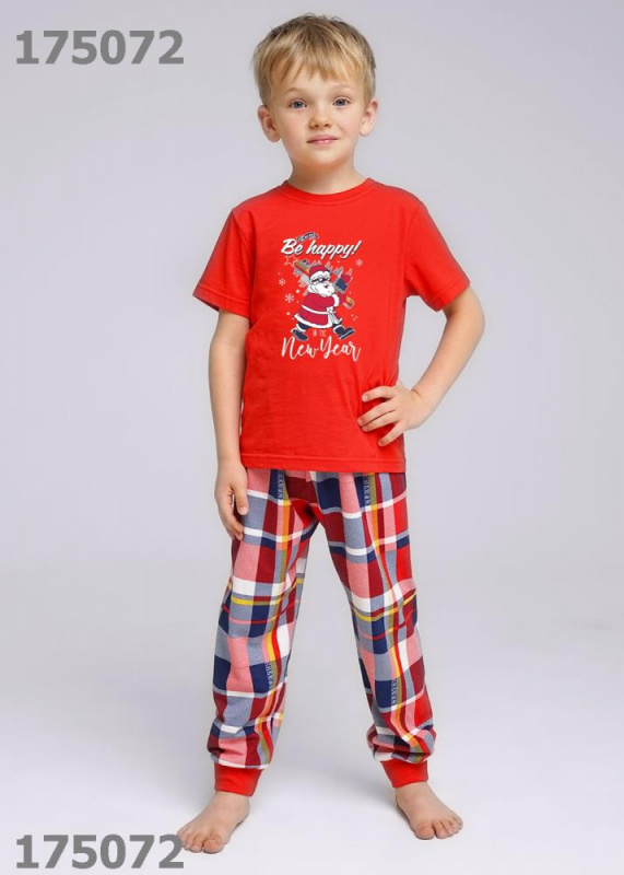 Комплект из свободной футболки и брюк.  Футболка с заниженной линией плеч, спереди новогодний принт. Брюки среднего объема по низу эластичный манжет.