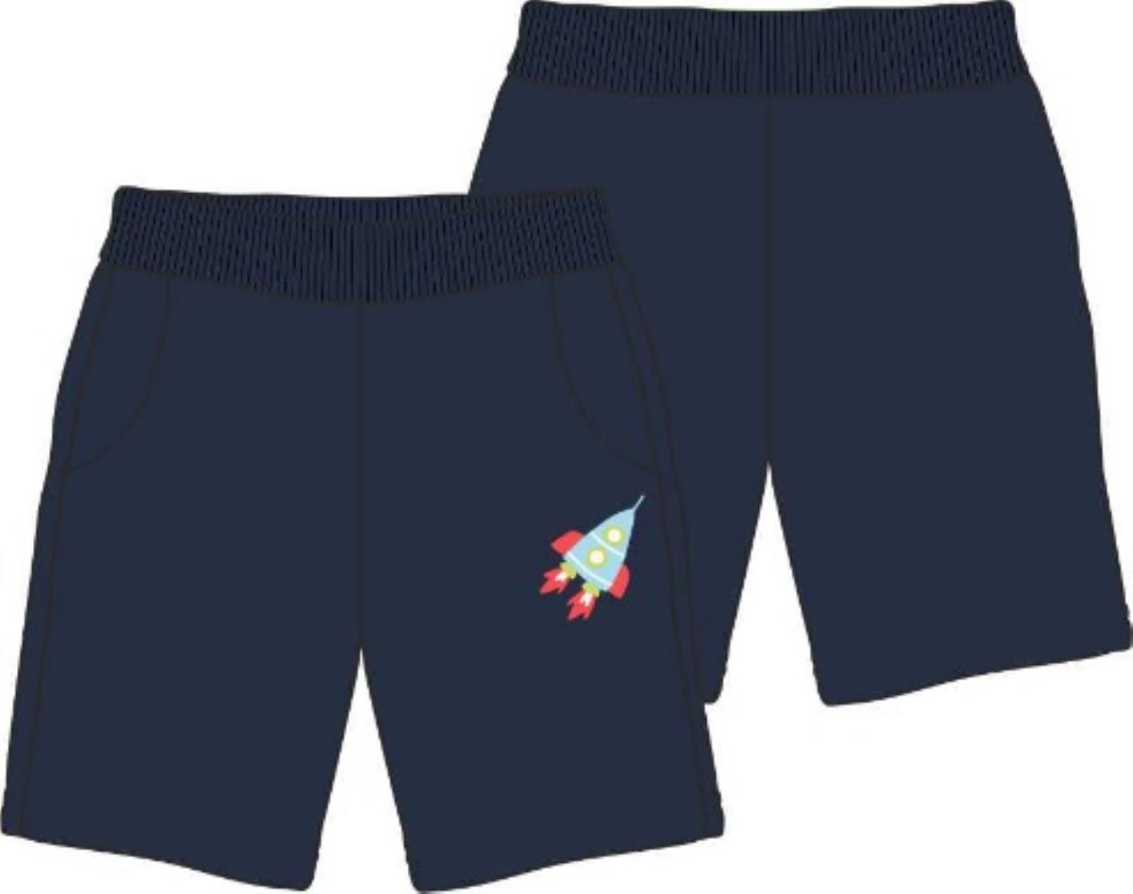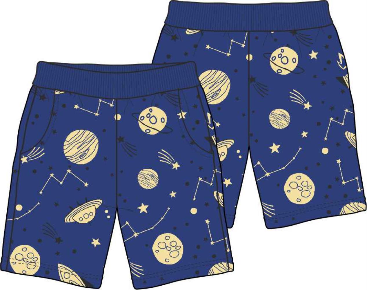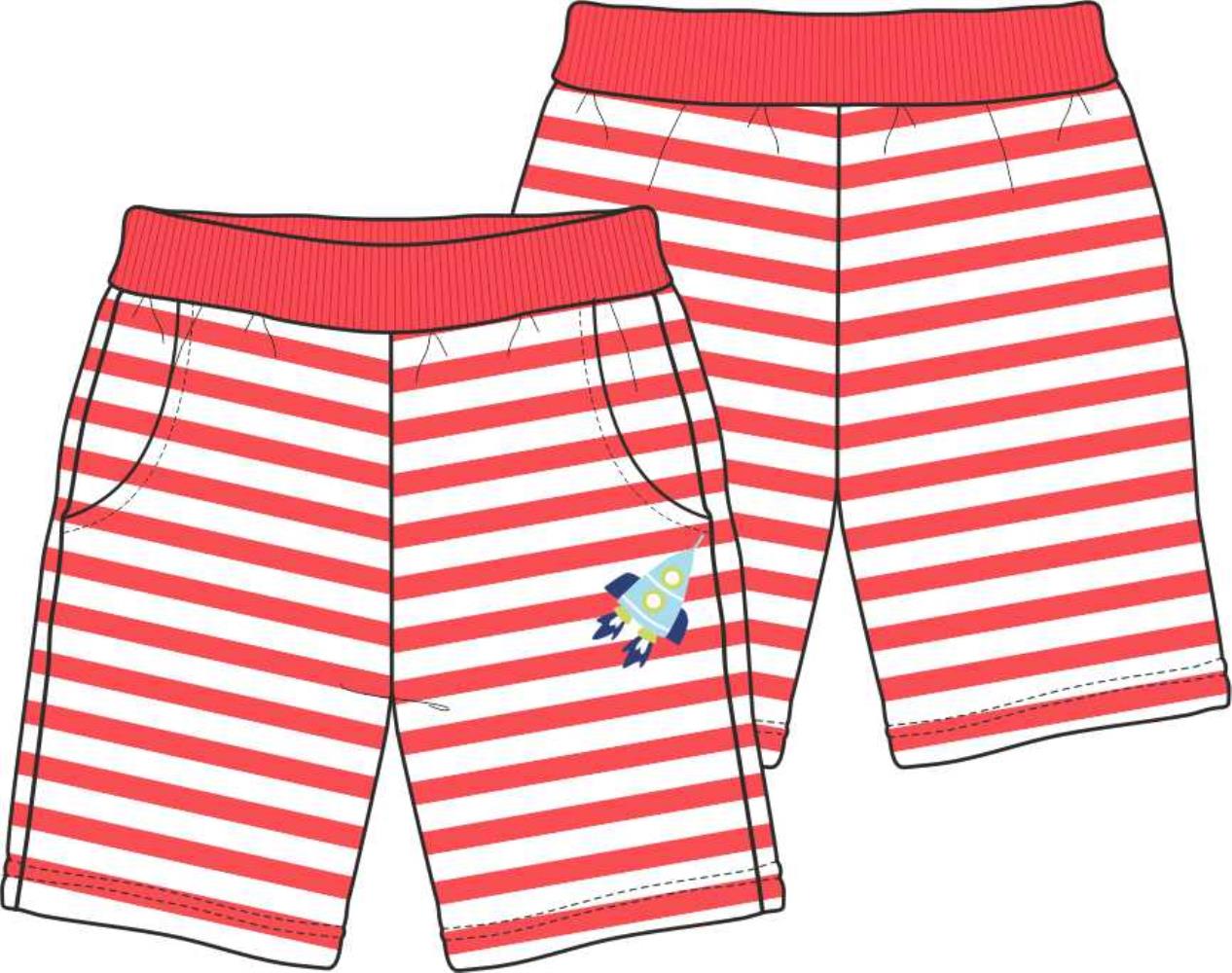 Кулирная гладь, 100% хлопок / Шорты для мальчика из мягкого трикотажа в полоску. Пояс из кашкорсе на резинке. На передней детали карманы и шелкография в виде ракеты.