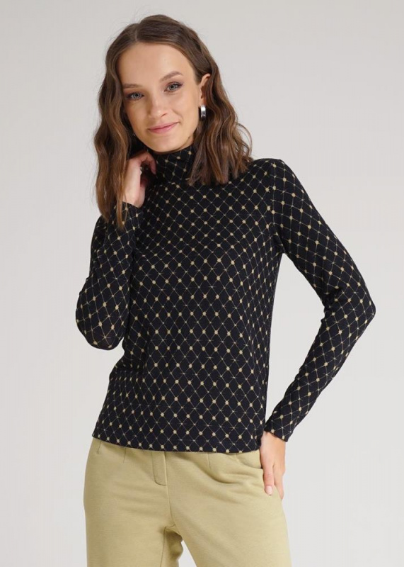 Джемпер из мягкого трикотажного полотна нергиз в набивку. Длинный втачной рукав. Воротник стойка.