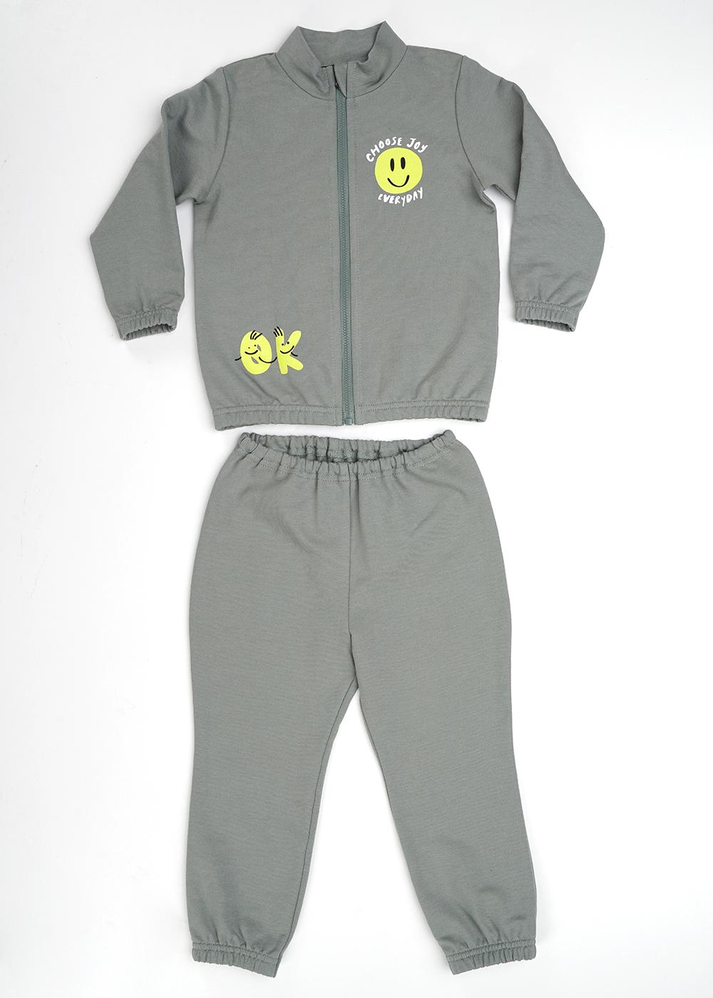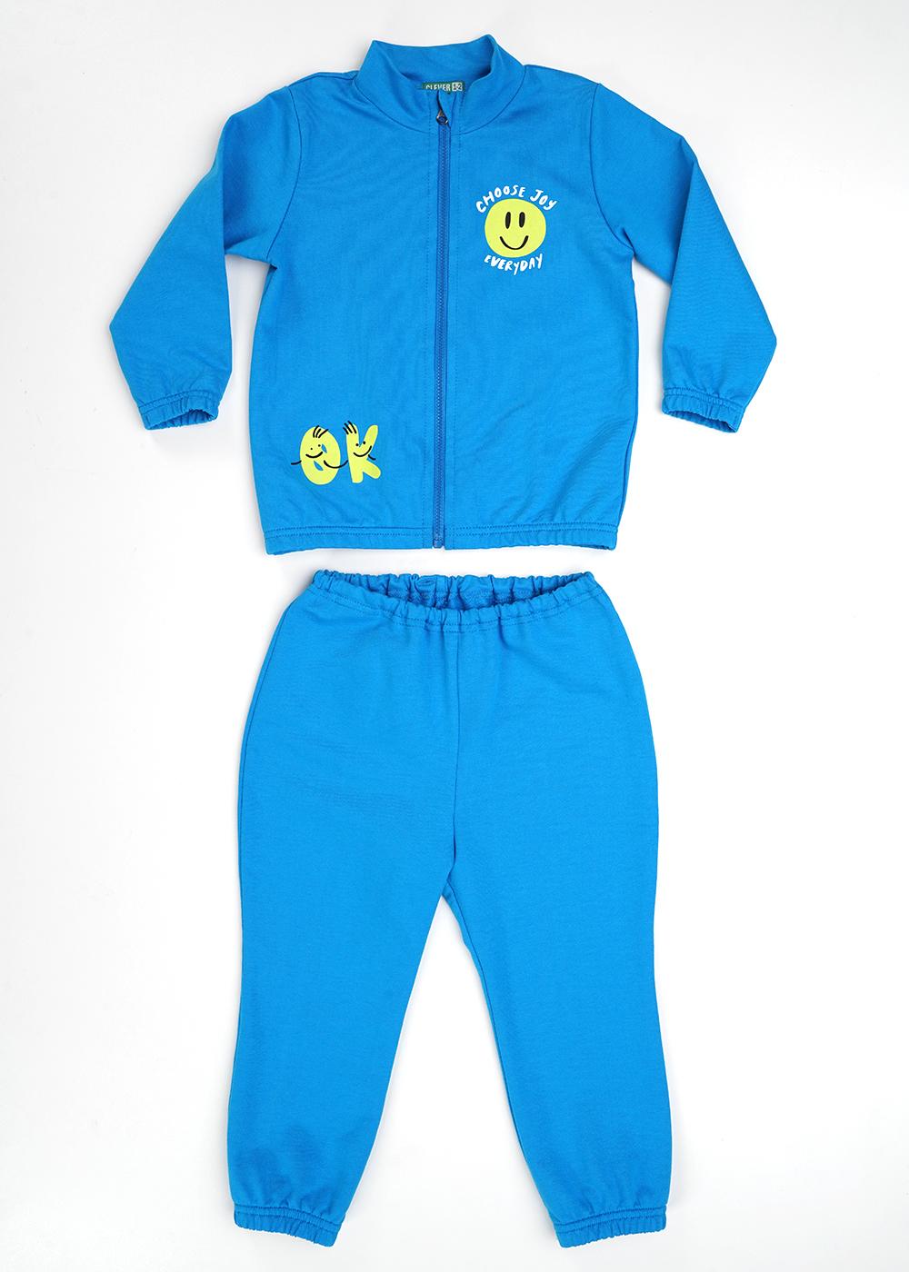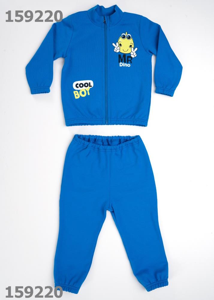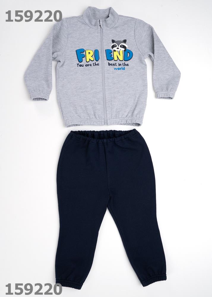 Ясельный комплект, состоящий из куртки на молнии и брючек на резинке. Выполнен из 100% хлопка. Куртка украшена принтом.