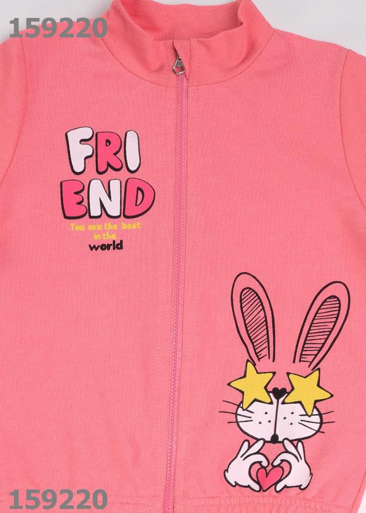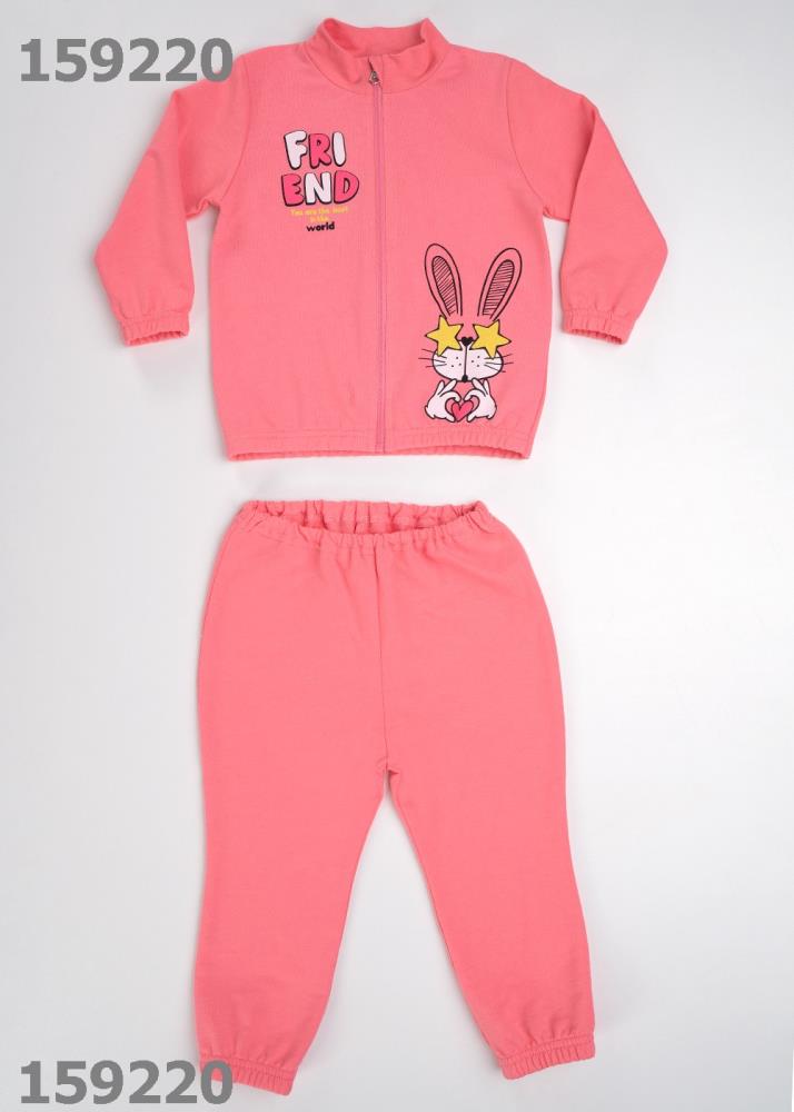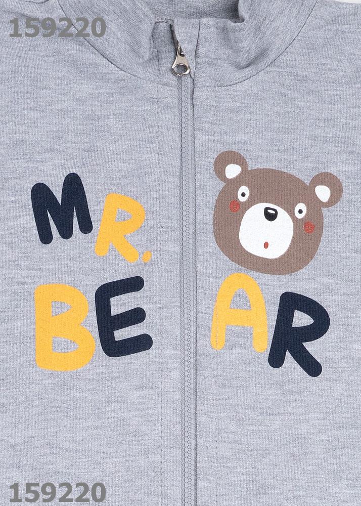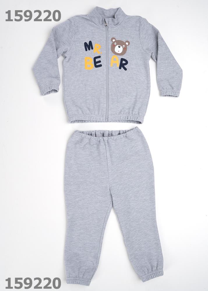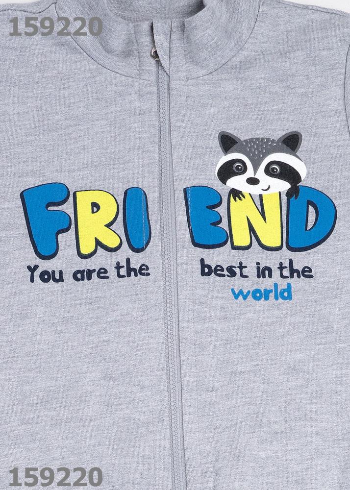 Ясельный комплект, состоящий из куртки на молнии и брючек на резинке. Выполнен из 100% хлопка. Куртка украшена принтом.