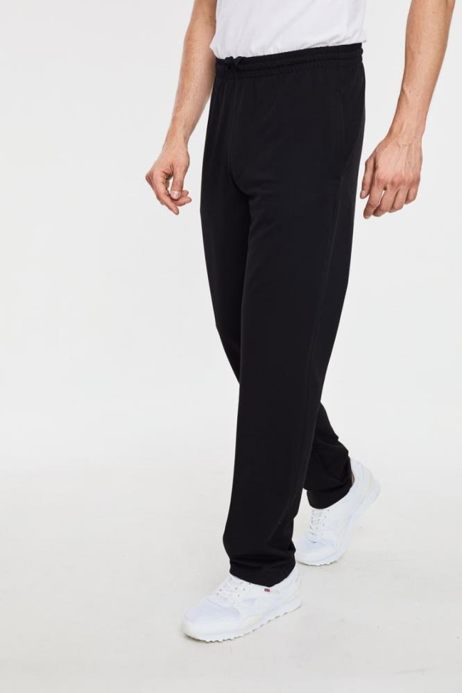 Брюки мужские с умеренным облеганием по линии талии и по линии бедер. Свободное облеганием в верхней части ноги. Верх брюк на притачном поясе со втяжной резинкой и затяжным шнуром, расположены в средней части пояса и выходящим через две выметанные петли. Низ брюк свободный прямой. Плотность 120гр/м2