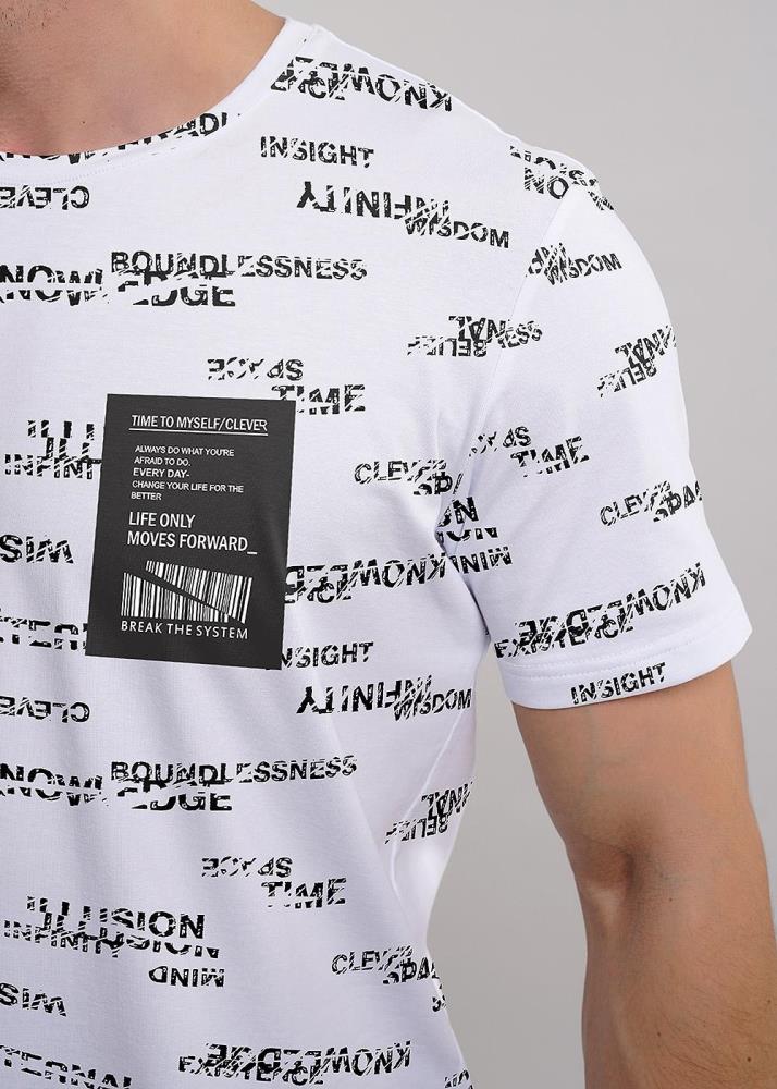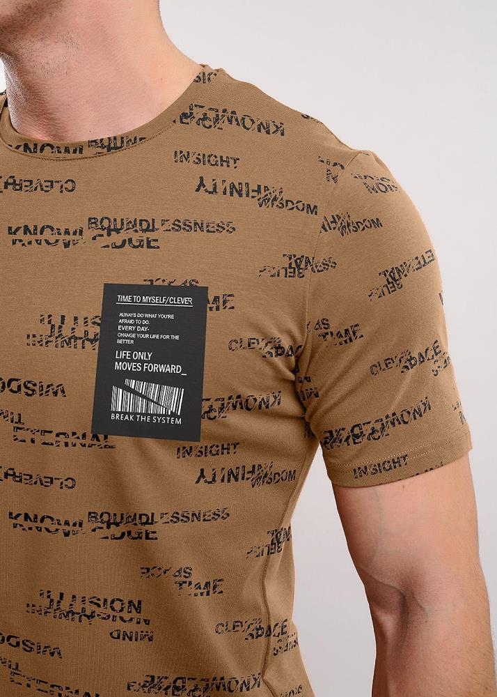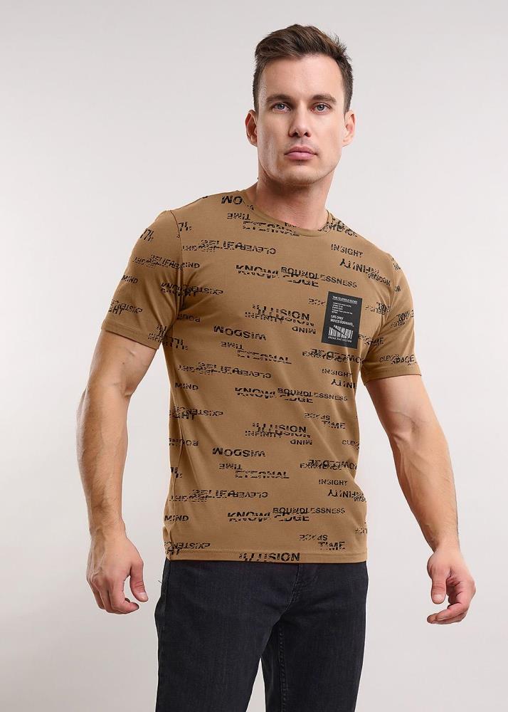 Стильная мужская футболка из хлопкового полотна с эластаном в шрифтовой рисунок. Оригинальность изделию придает фирменная нашивка. Отличный вариант для прогулок и встреч с друзьями.