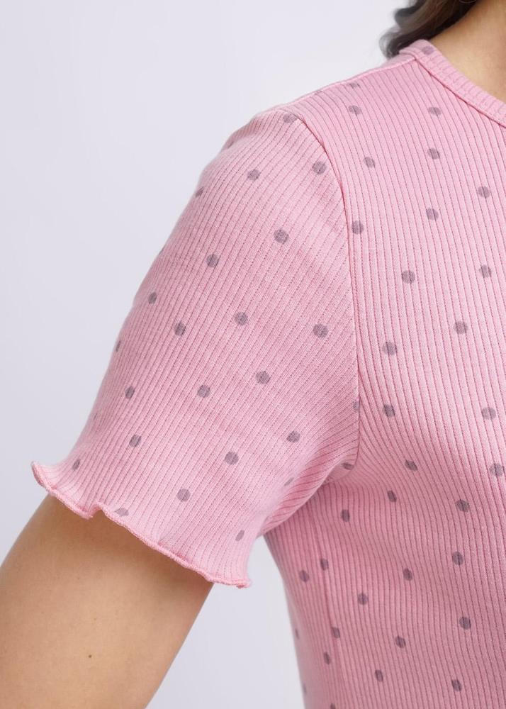 Домашнее платье из ткани кашкорсе. Втачной рукав, округлая горловина. Завершает дизайн принт.