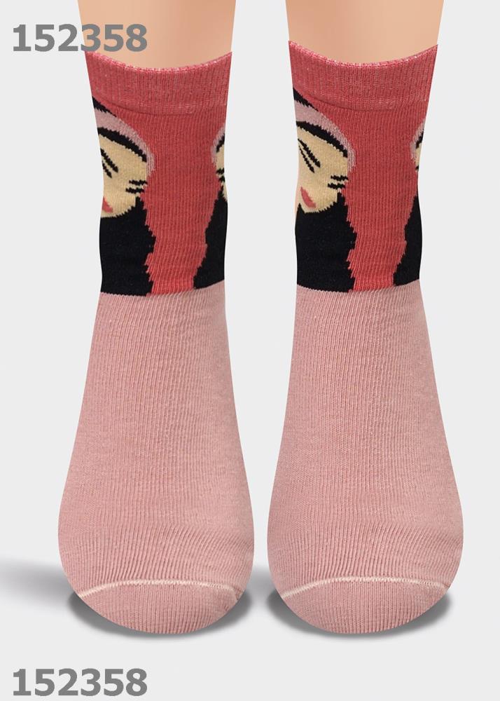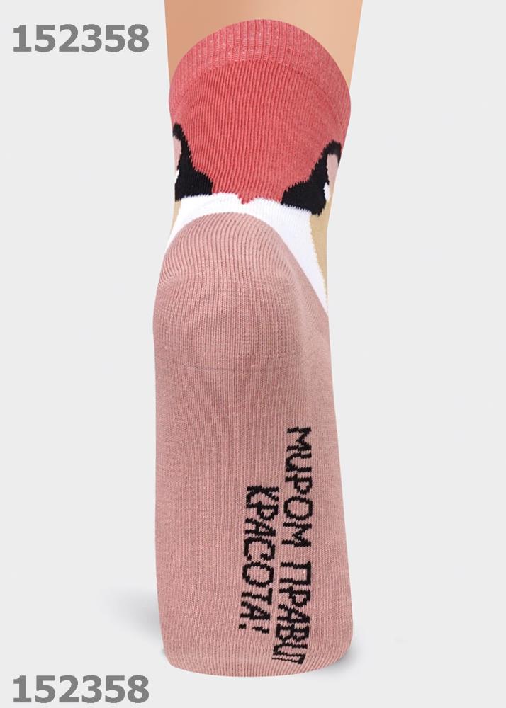 Женский носок со стильной портретной графикой. С оригинальным текстом по следу: миром правит красота!