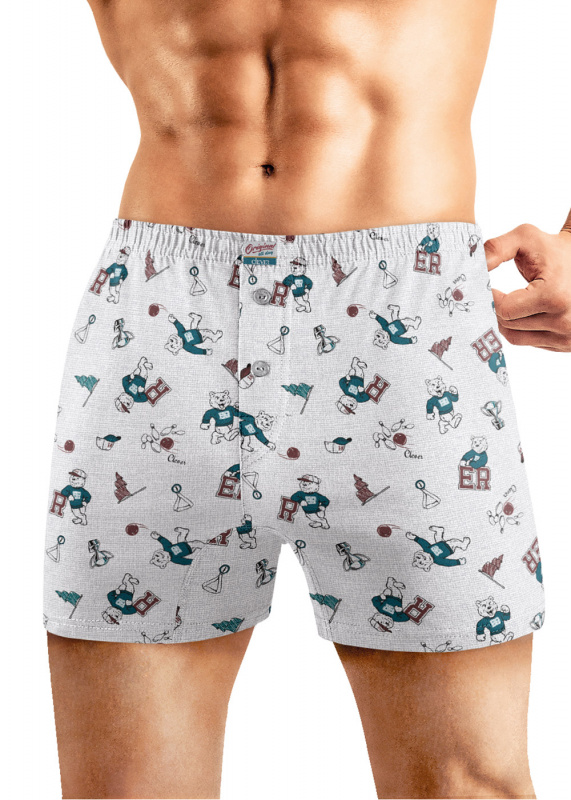 Боксеры комфортной посадки выполнены из оригинального полотна в игровую набивку. Трусы дополнены пуговицами и жаккардовым логотипом.